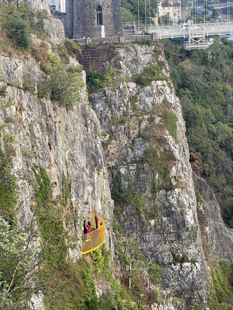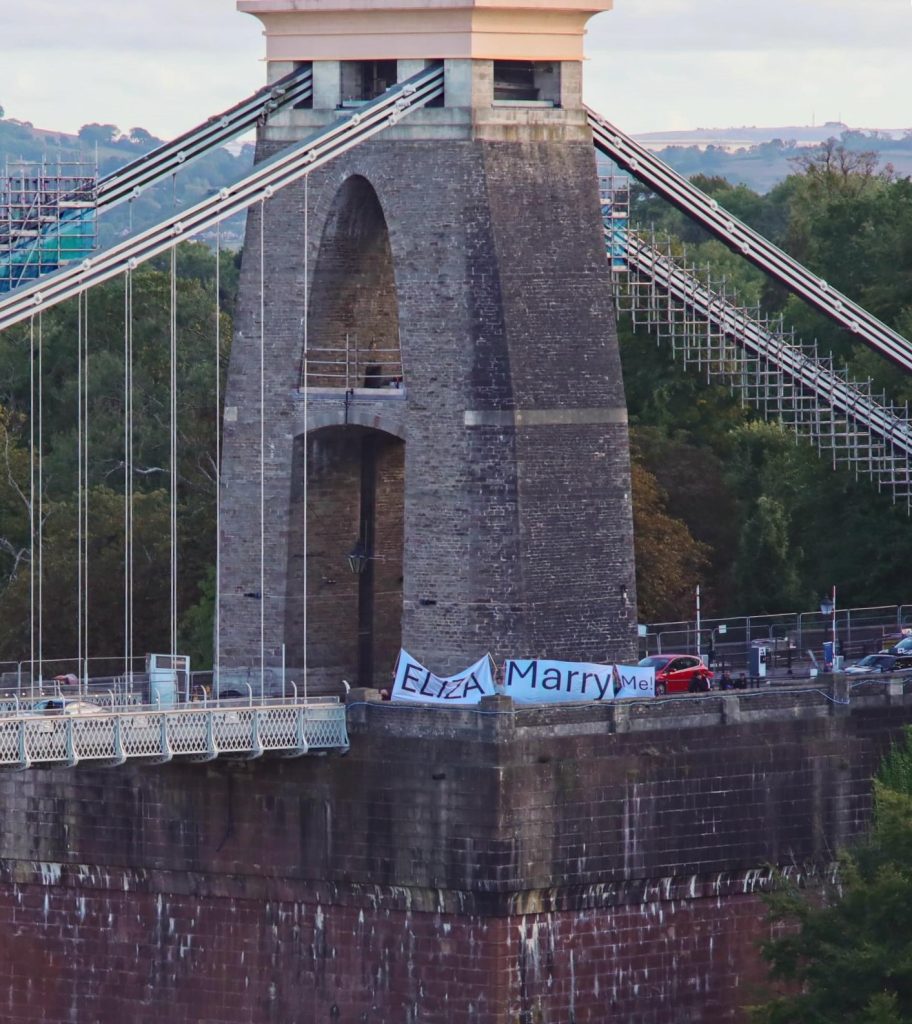 Looking through a pair of binoculars in the Giant’s Cave overlooking the Avon Gorge, Eliza Fyfe spotted a banner hanging over the side of the Clifton Suspension Bridge with the words ‘Eliza marry me’.