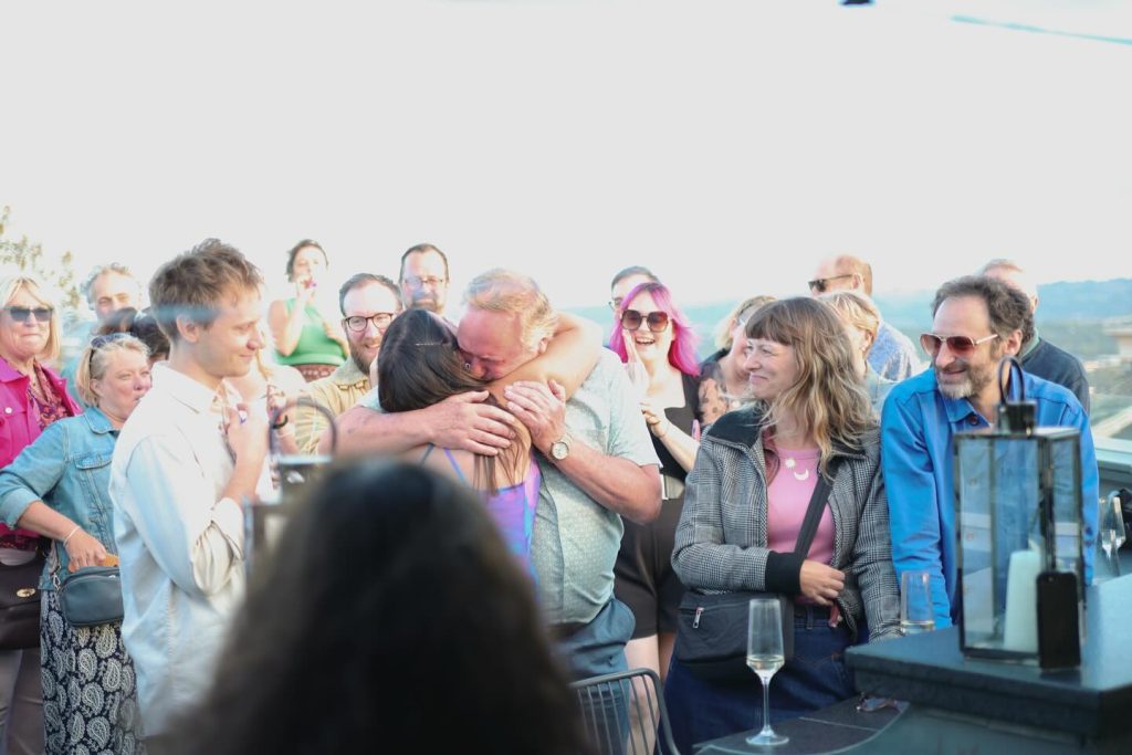 When the newly engaged pair returned through the tunnel to the Clifton Observatory above ground, they were met with a large group of family and friends, several of who had been integral in the logistics behind acoustic scientist Adam’s proposal.