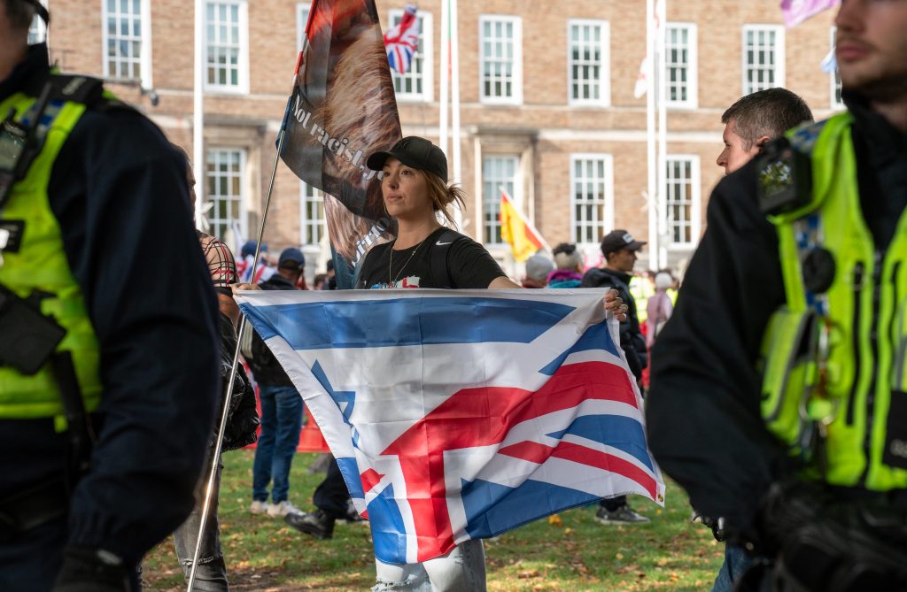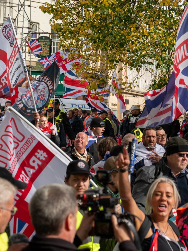 A few dozen people marched the few hundred metres from the Cenotaph to College Green on Sunday afternoon where they were promptly surrounded by hundreds of anti-racist and anti-fascist counter-protesters.