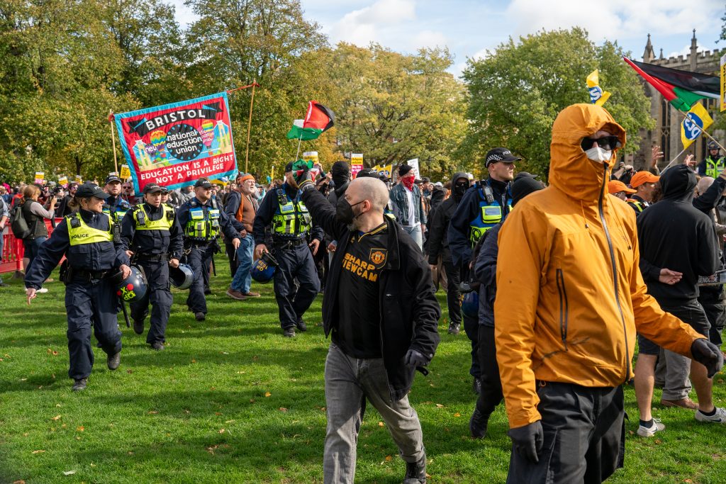 The counter-protesters were meant to gather in a pen on the Quay Street side of the Cenotaph but instead based themselves next to the Neptune statue on the Centre with police then kettling them in and not allowing anyone to leave until the ‘Bristol Patriots’ had gone past.
