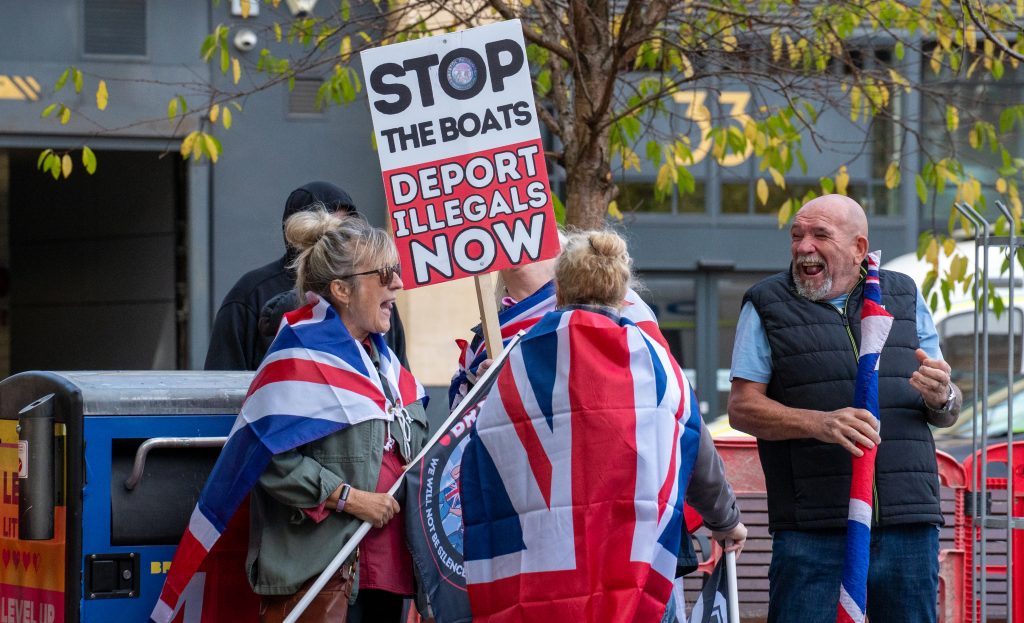 The ‘Bristol Patriots’, many of who were carrying the Union Jack and St George’s flags, had called the ‘enough is enough protest’ with a trio of demands: ‘deport all illegals’, ‘get Starmer out’ and ‘we want change’.