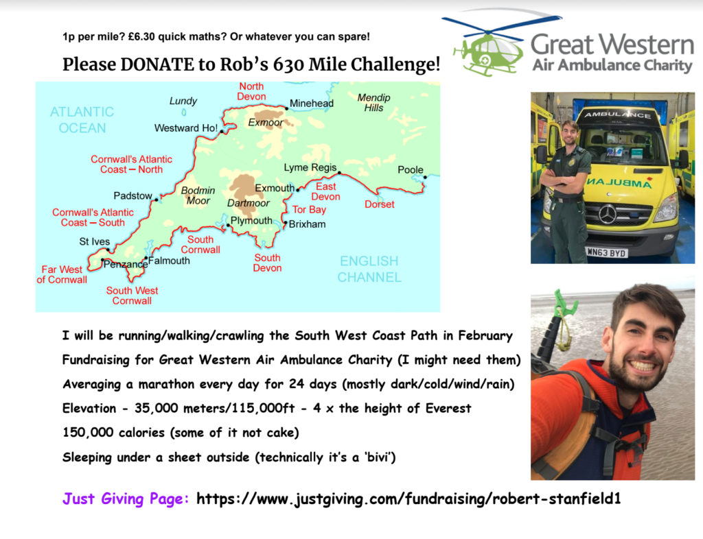 Rob begins his journey on Wednesday, February 2 and is accepting donations through his JustGiving page.