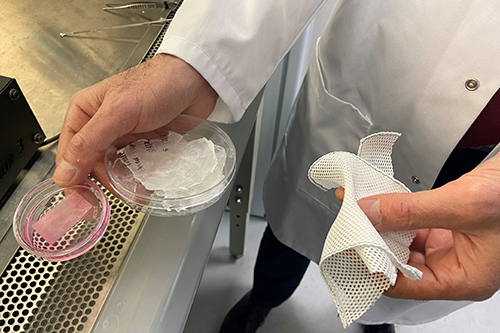 New stem cell plaster [left] original surgical material [right] photo: British Heart Foundation