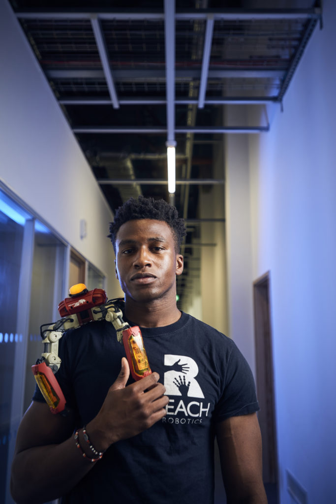 Born in Nigeria, Adekunle moved to England when he was 11 and went on to start Reach Robotics while in his third year of university, along with co-founders John Rees and Chris Beck.