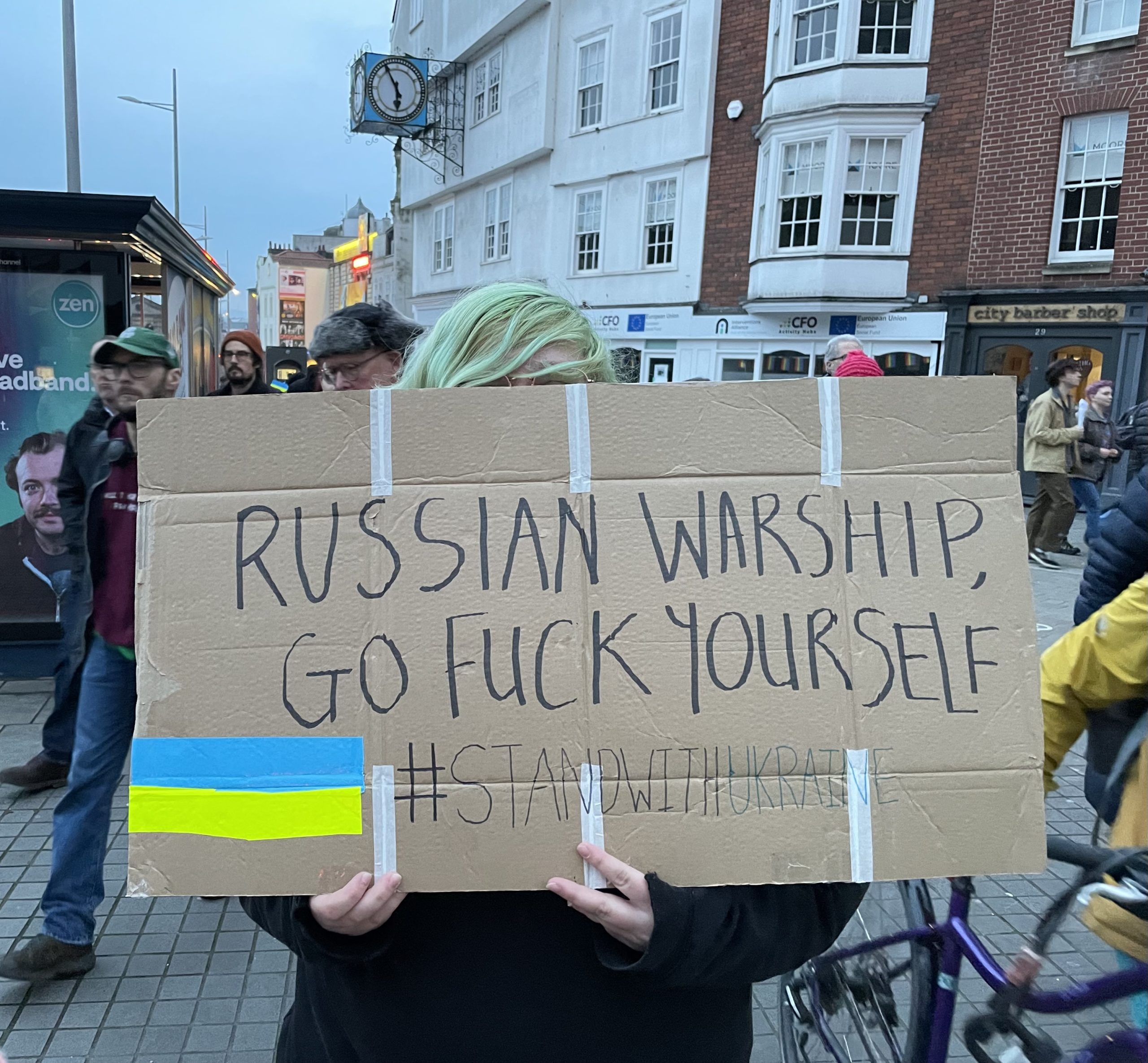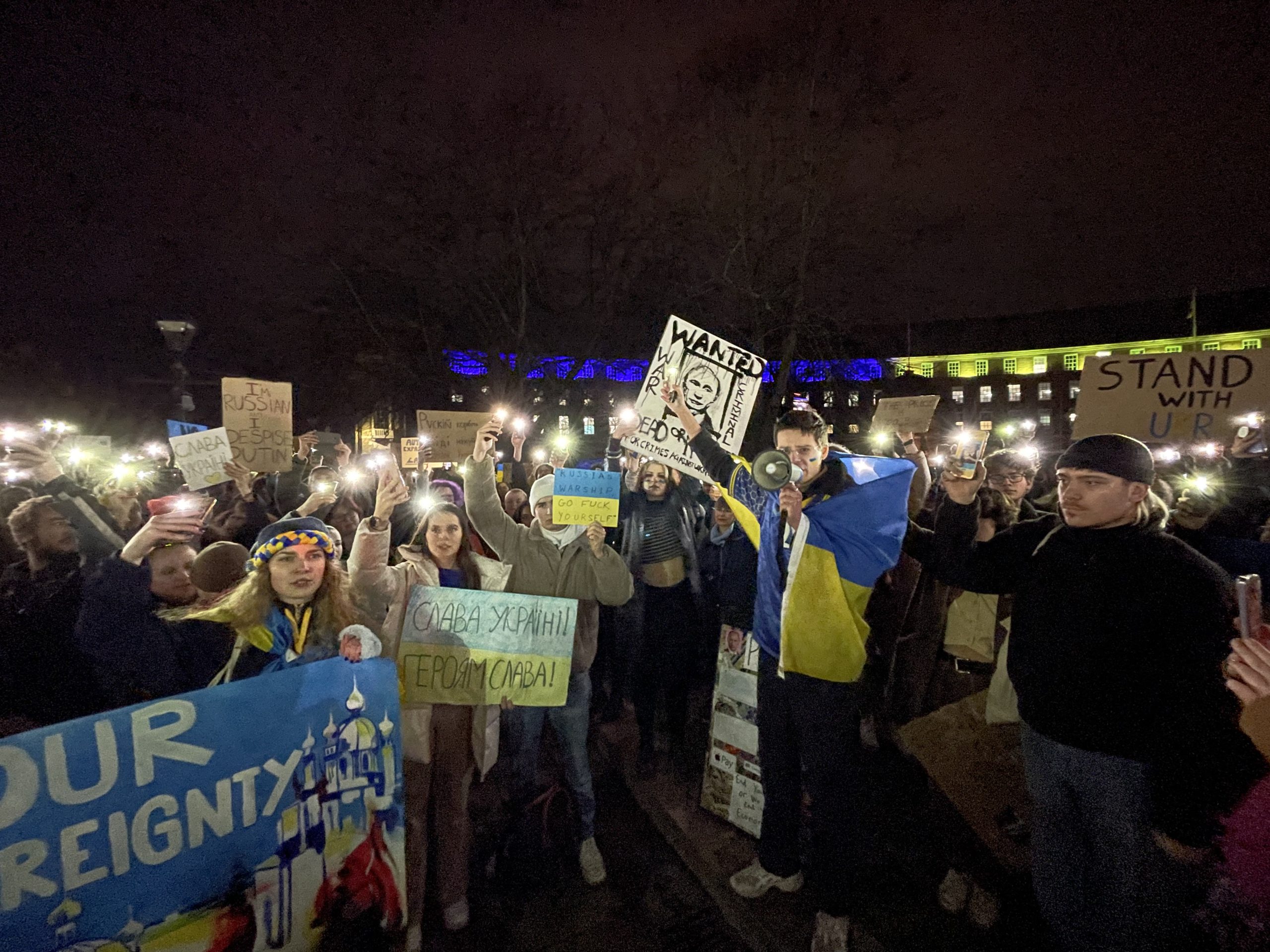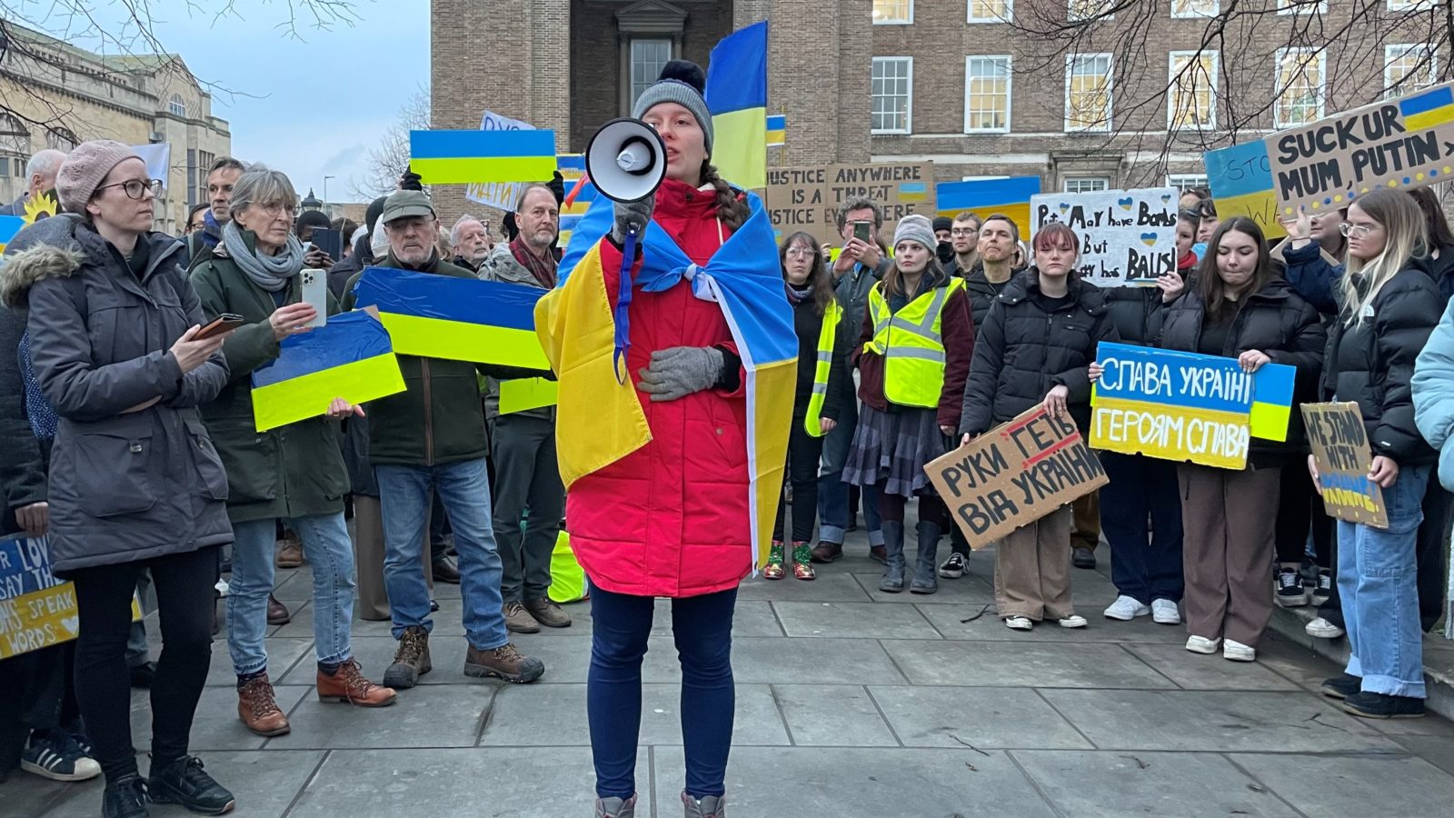 Against the backdrop of City Hall lit in the blue and yellow of the Ukrainian flag, Green Party co-leader and Clifton Down councillor Carla Denyer also spoke to the hundreds of people who had gathered.