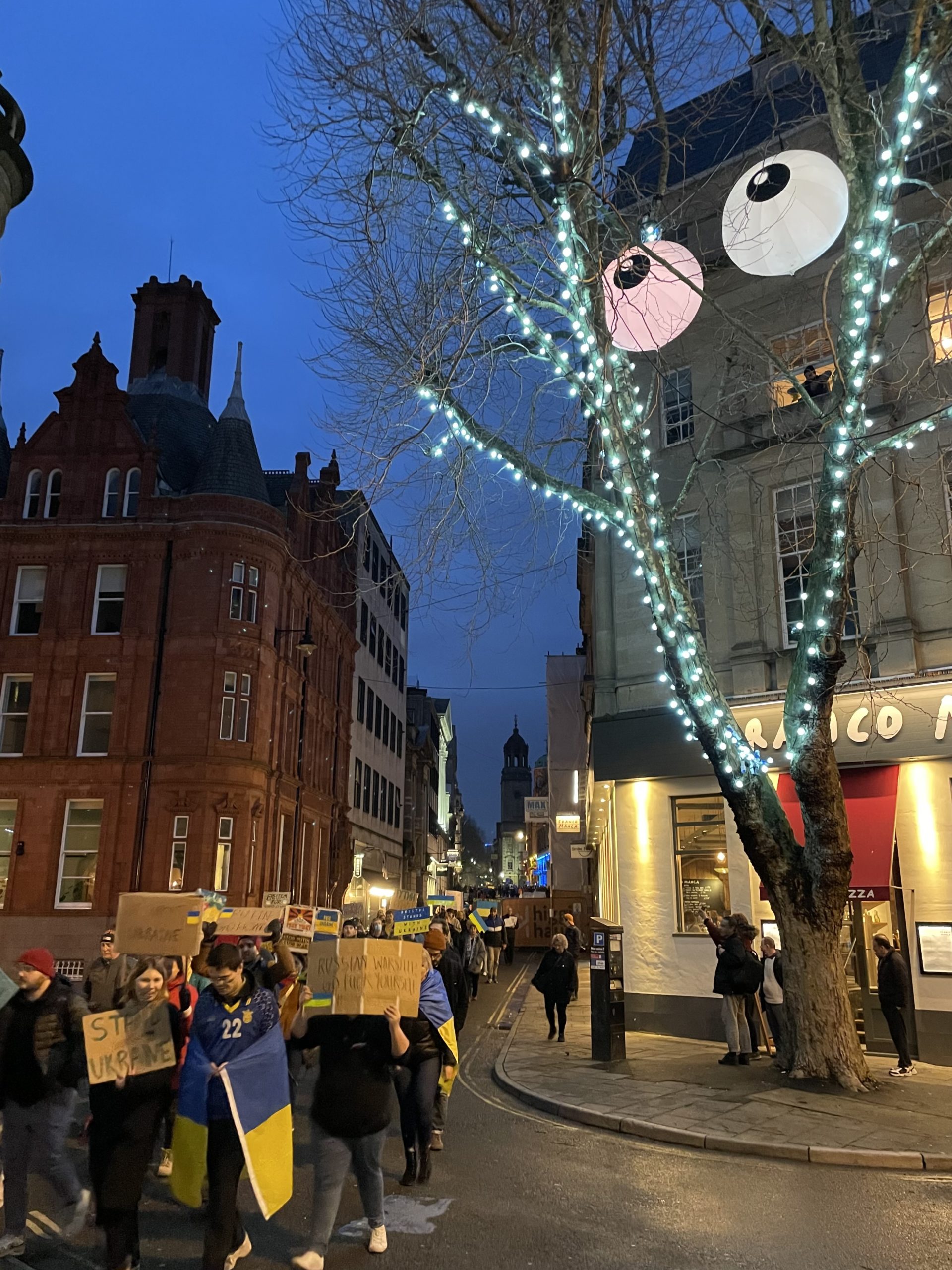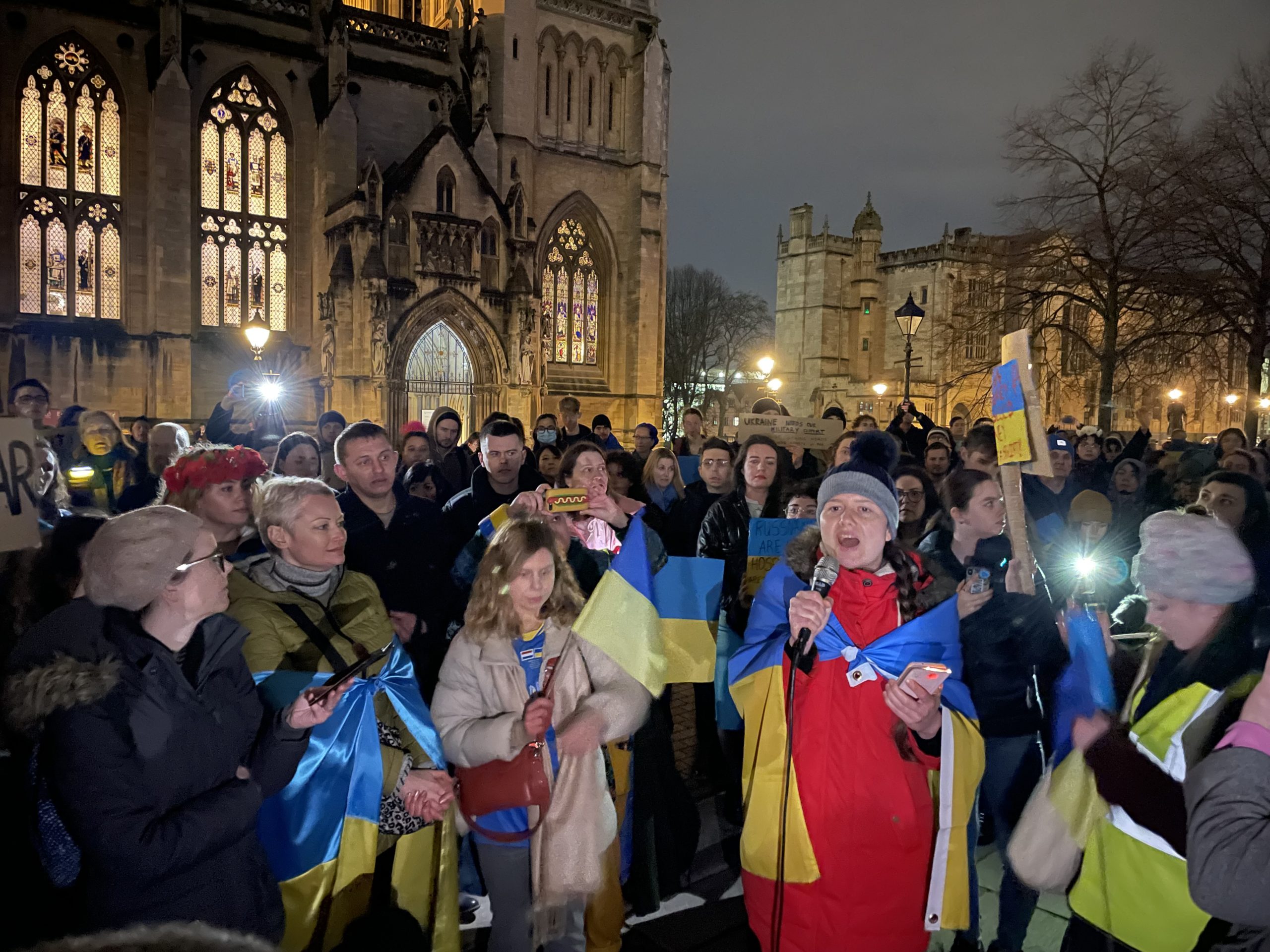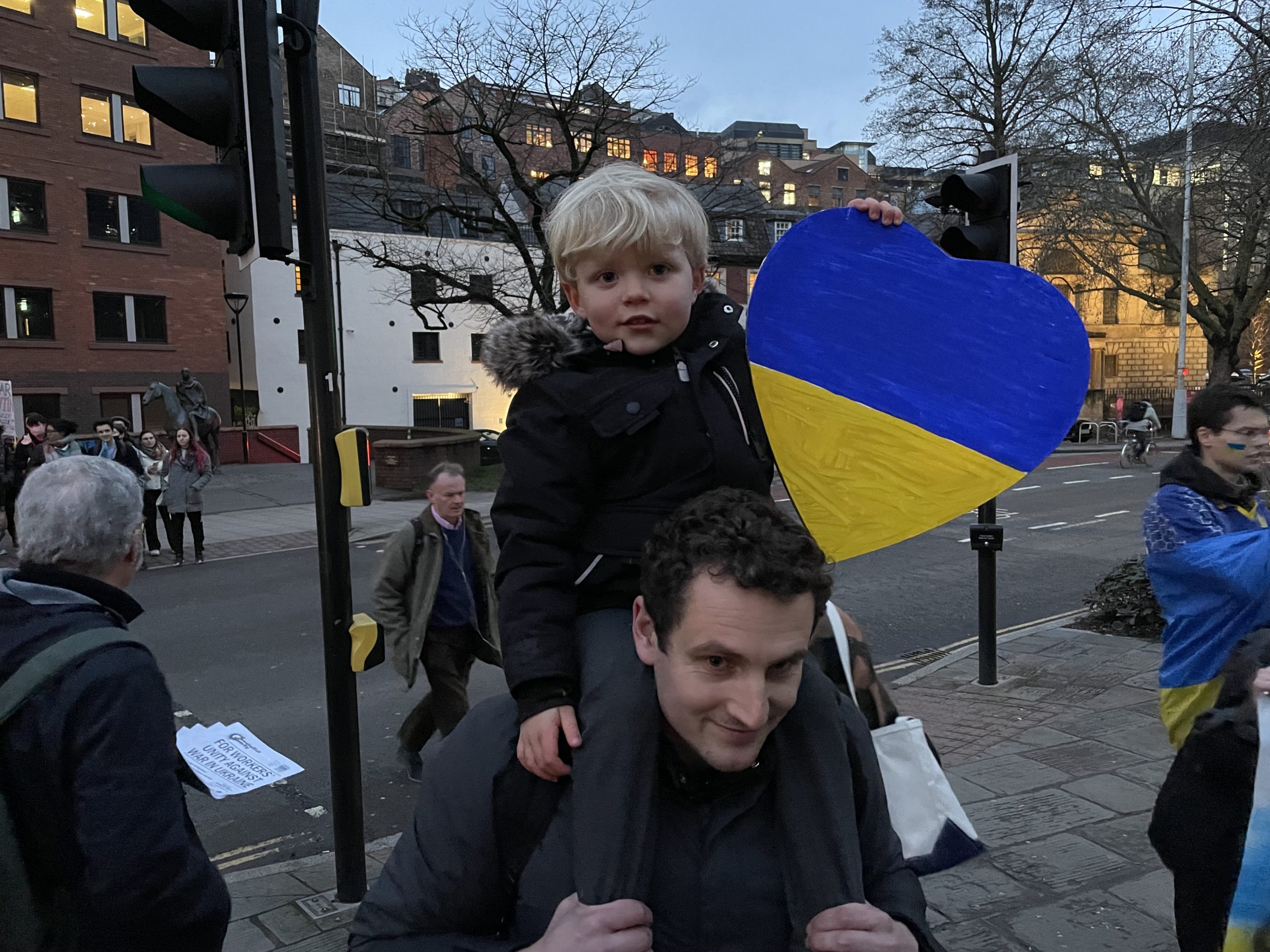 In emotional scenes, Ukrainians in Bristol sung their national anthem on College Green following a march around the city in support of their homeland.
