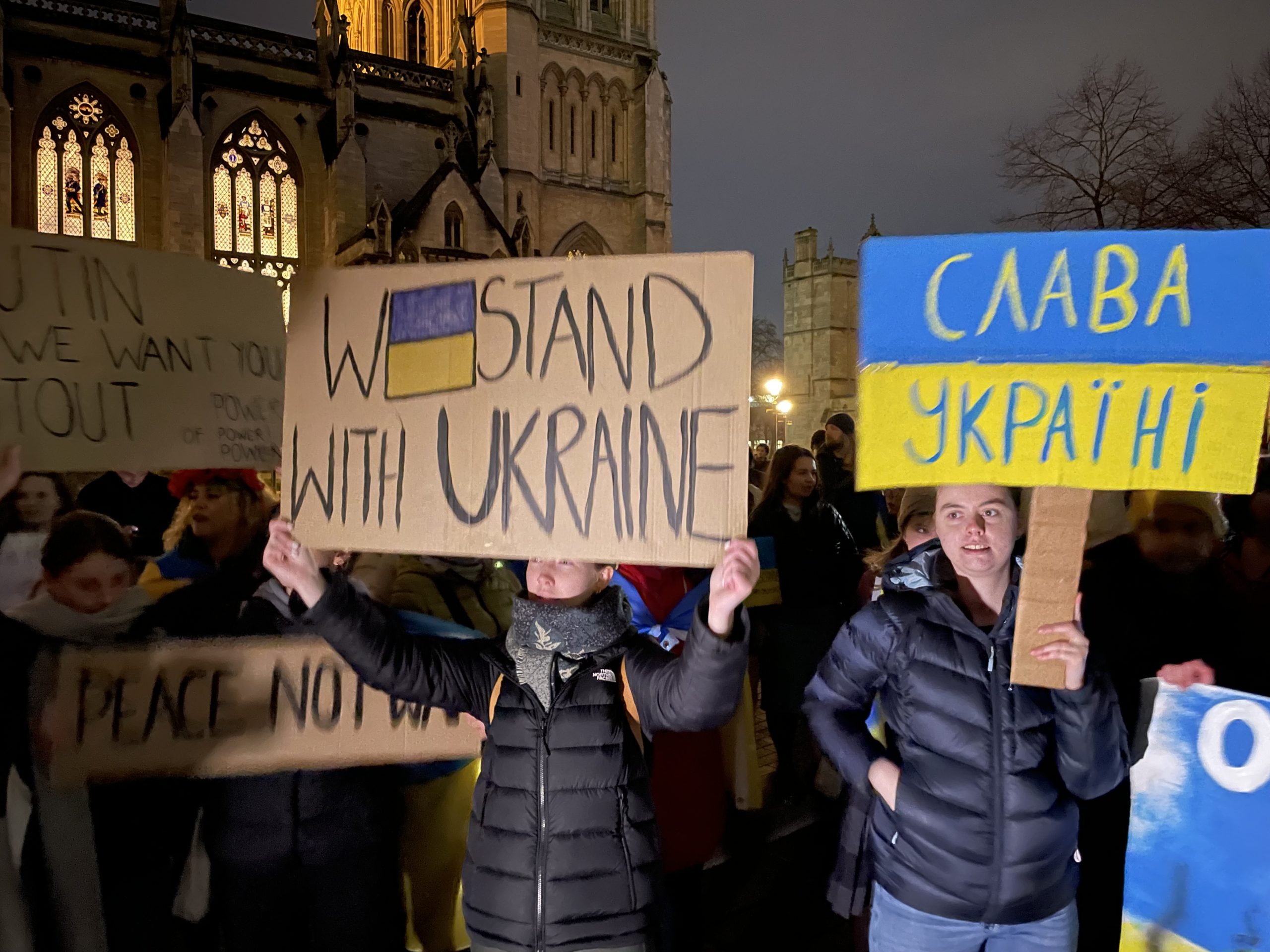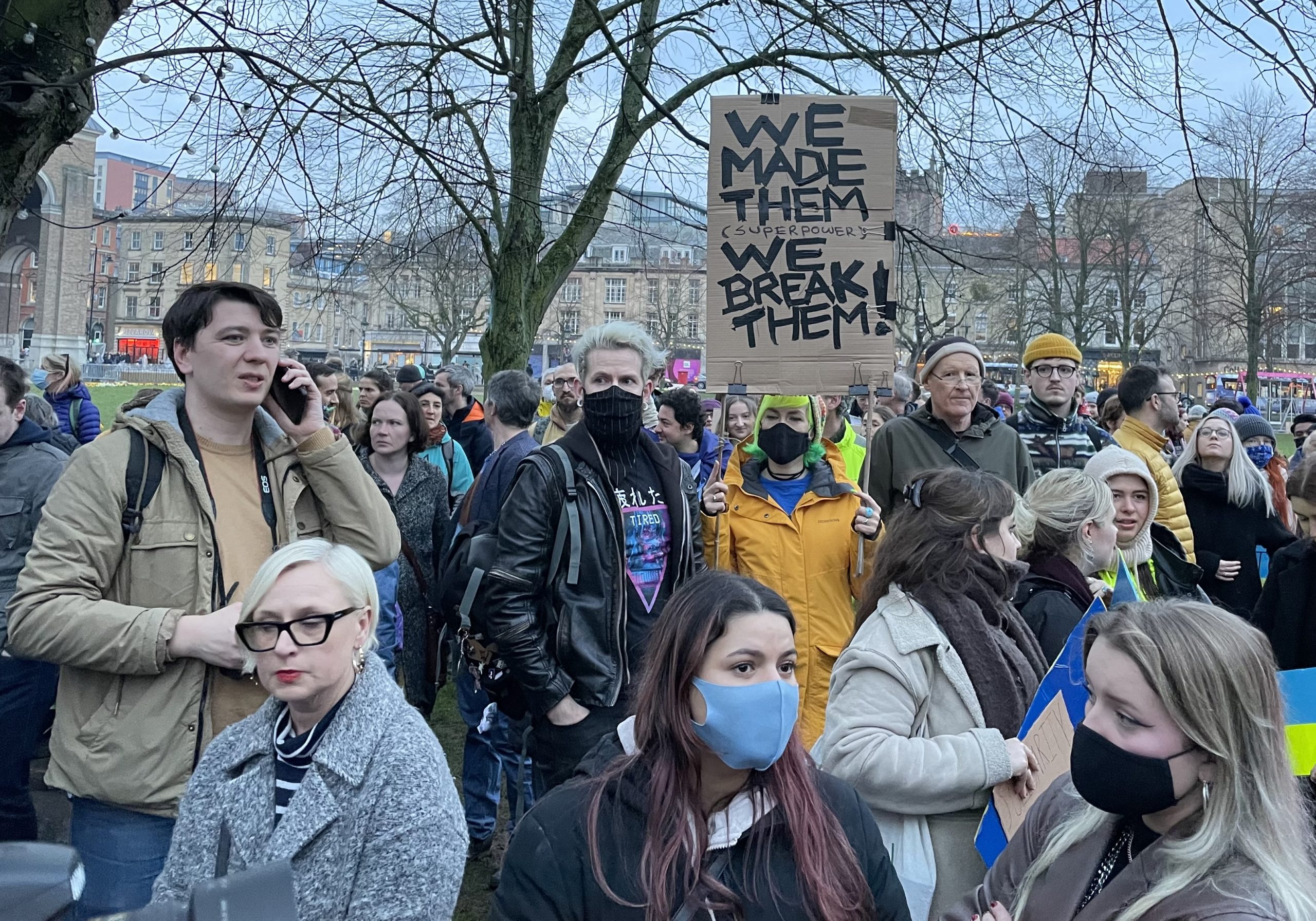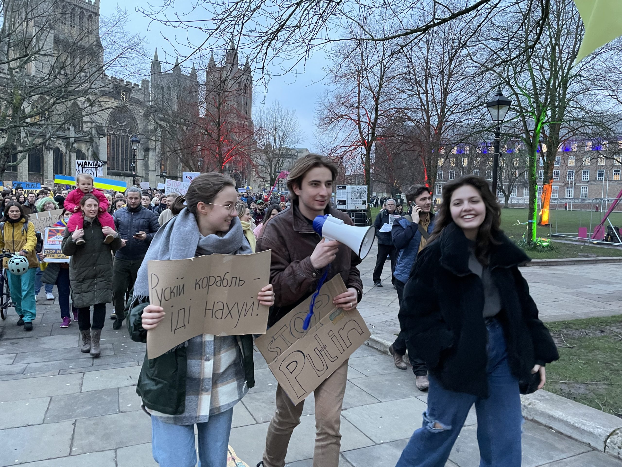 In emotional scenes, Ukrainians in Bristol sung their national anthem on College Green following a march around the city in support of their homeland.