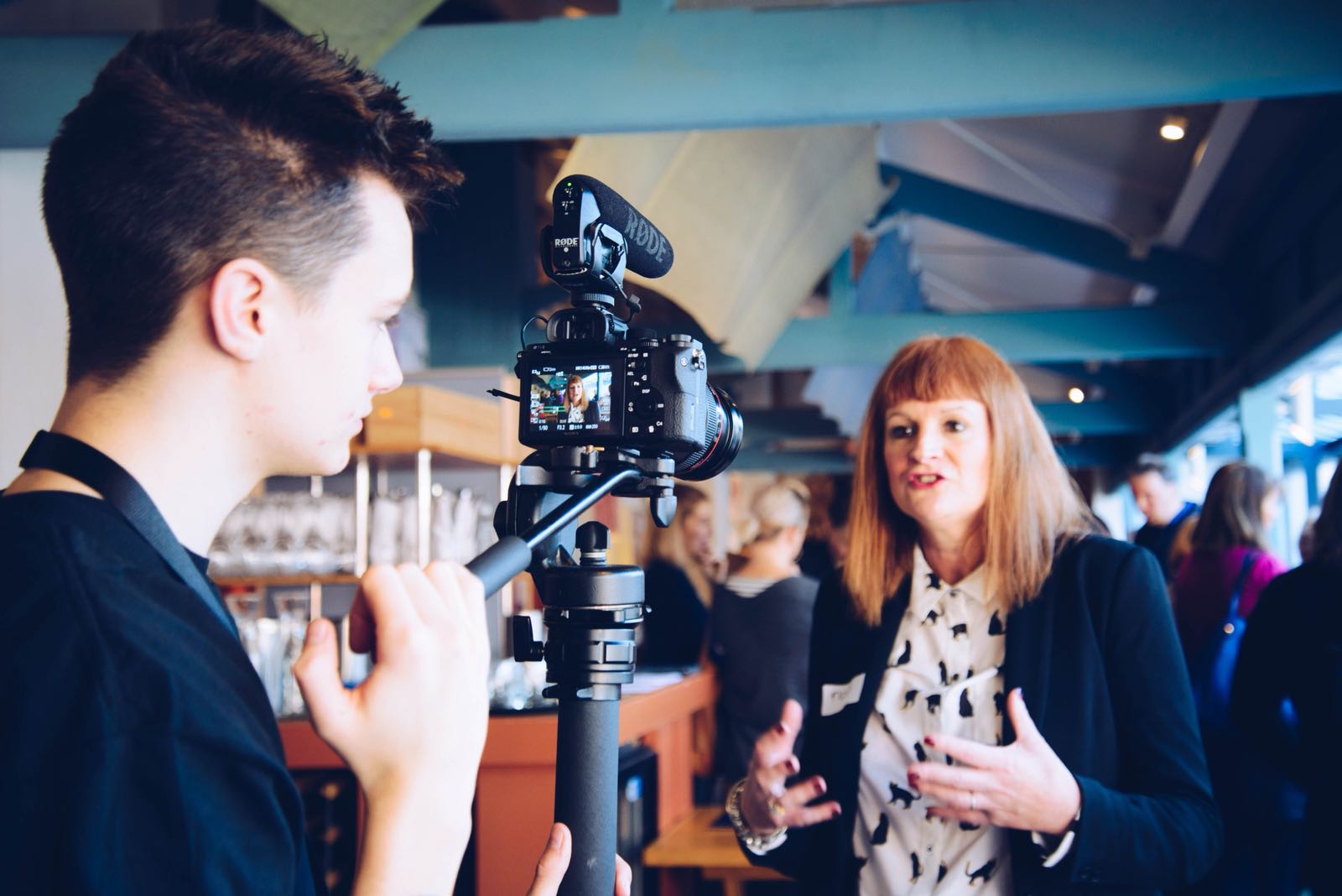 Social media experts chat and film at the opening day of Social Media Week Bristol at The Lido – photo by Ciara Hillyer