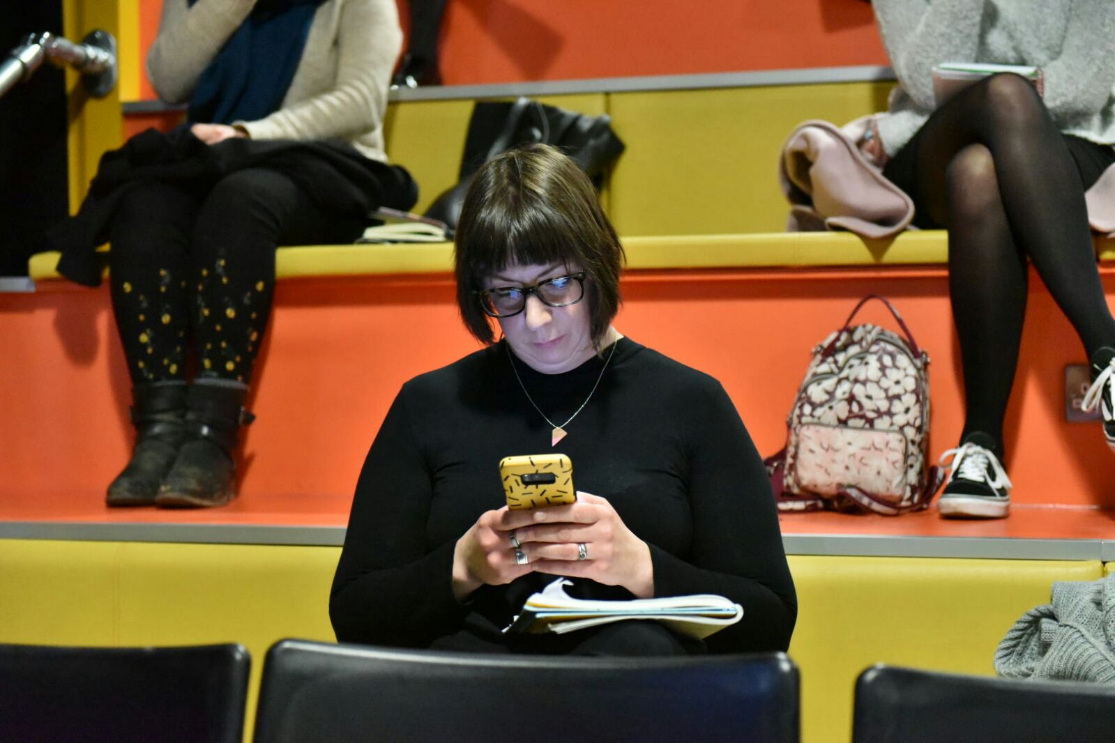 An audience member at the Engine Shed – photo by Rebecca Noakes