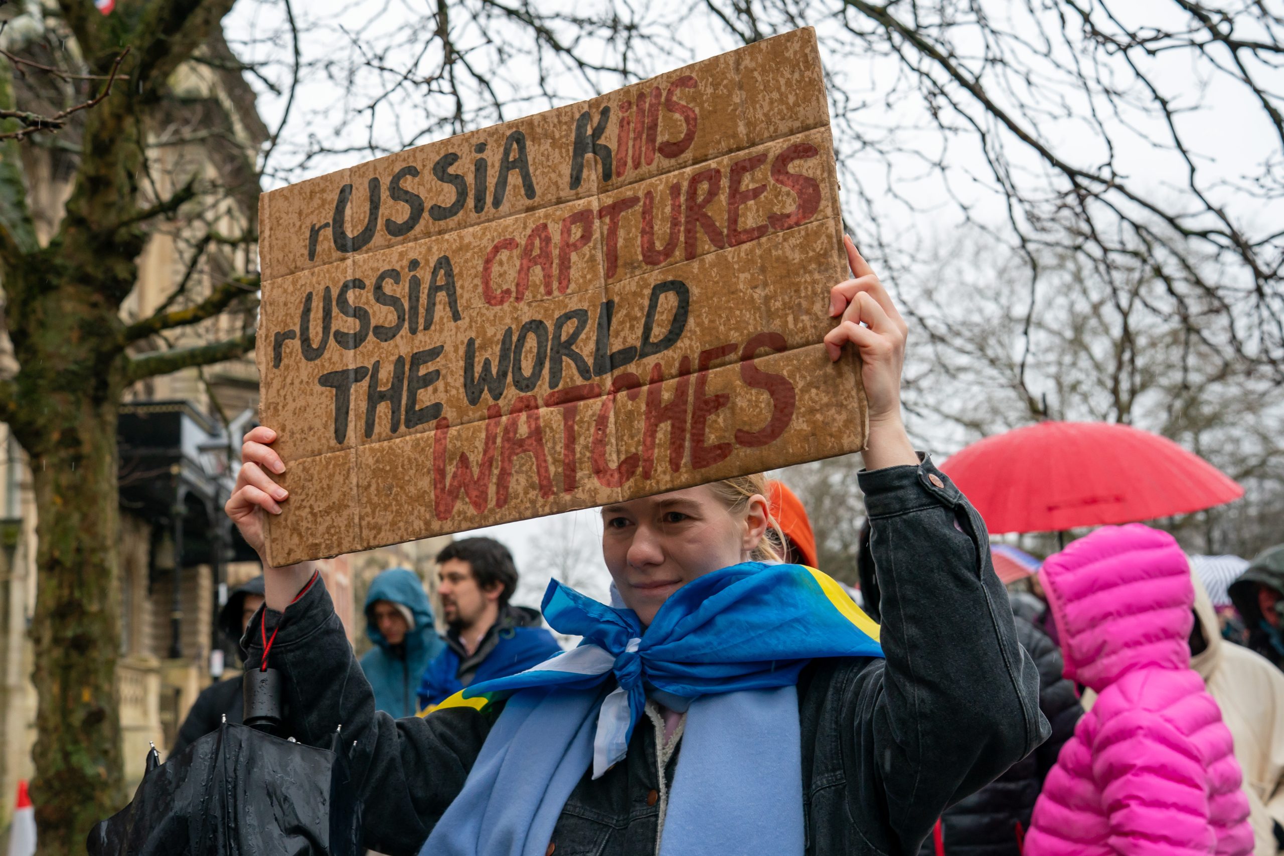 The rally concluded at a new exhibition in Broadmead, designed to raise awareness of Ukraine’s devastation and resilience, while hoping to garner continued support from the West.