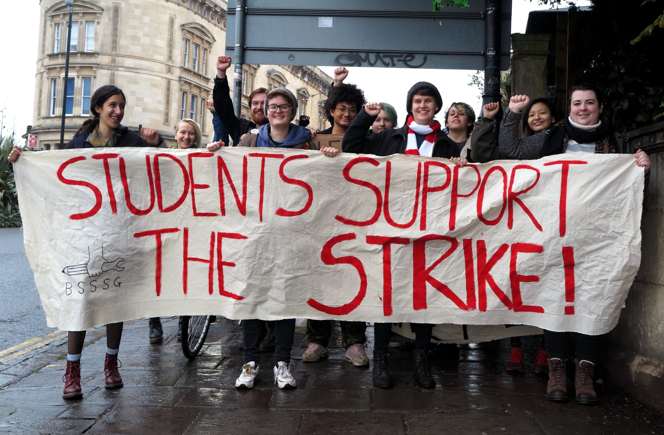 Students supporting a previous strike by Bristol University staff – photo courtesy of Bristol University University and Colleges Union