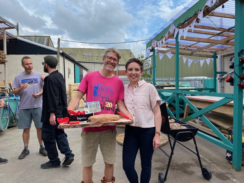 Green Party co-leader and Bristol Central general election candidate Carla Denyer has helped to celebrate 20 years of Bristol Wood Recycling Project as a “cultural landmark” in our city’s sustainability journey.