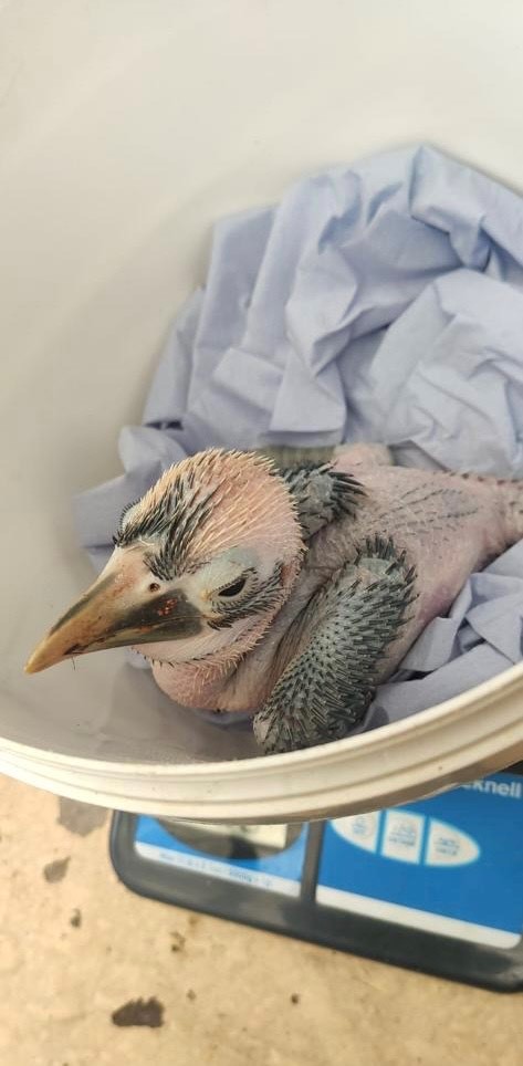 The Hornbill chick will gain its feathers over the next week or so – photo: Bristol Zoological Society