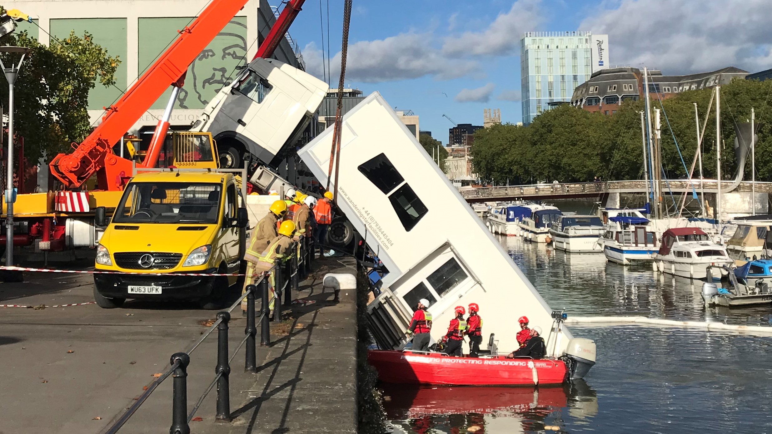 Not the only object to be famously toppled into the docks, this picture reveals the partially submerged costume trailer from Stephen Merchant’s The Outlaws which was accidentally plunged into the Harbourside’s waters in October. In response, Merchant joked: “because of the HGV driver shortage we had to use some local drivers and the only one we could get available to drive that was my nan”.