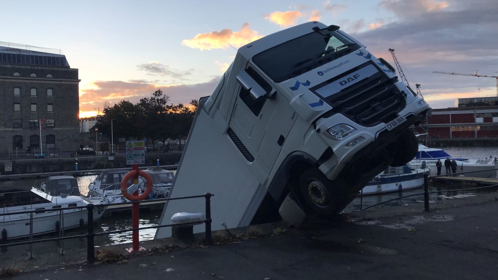 Not the only object to be famously toppled into the docks, this picture reveals the partially submerged costume trailer from Stephen Merchant’s The Outlaws which was accidentally plunged into the Harbourside’s waters in October. In response, Merchant joked: “because of the HGV driver shortage we had to use some local drivers and the only one we could get available to drive that was my nan”.