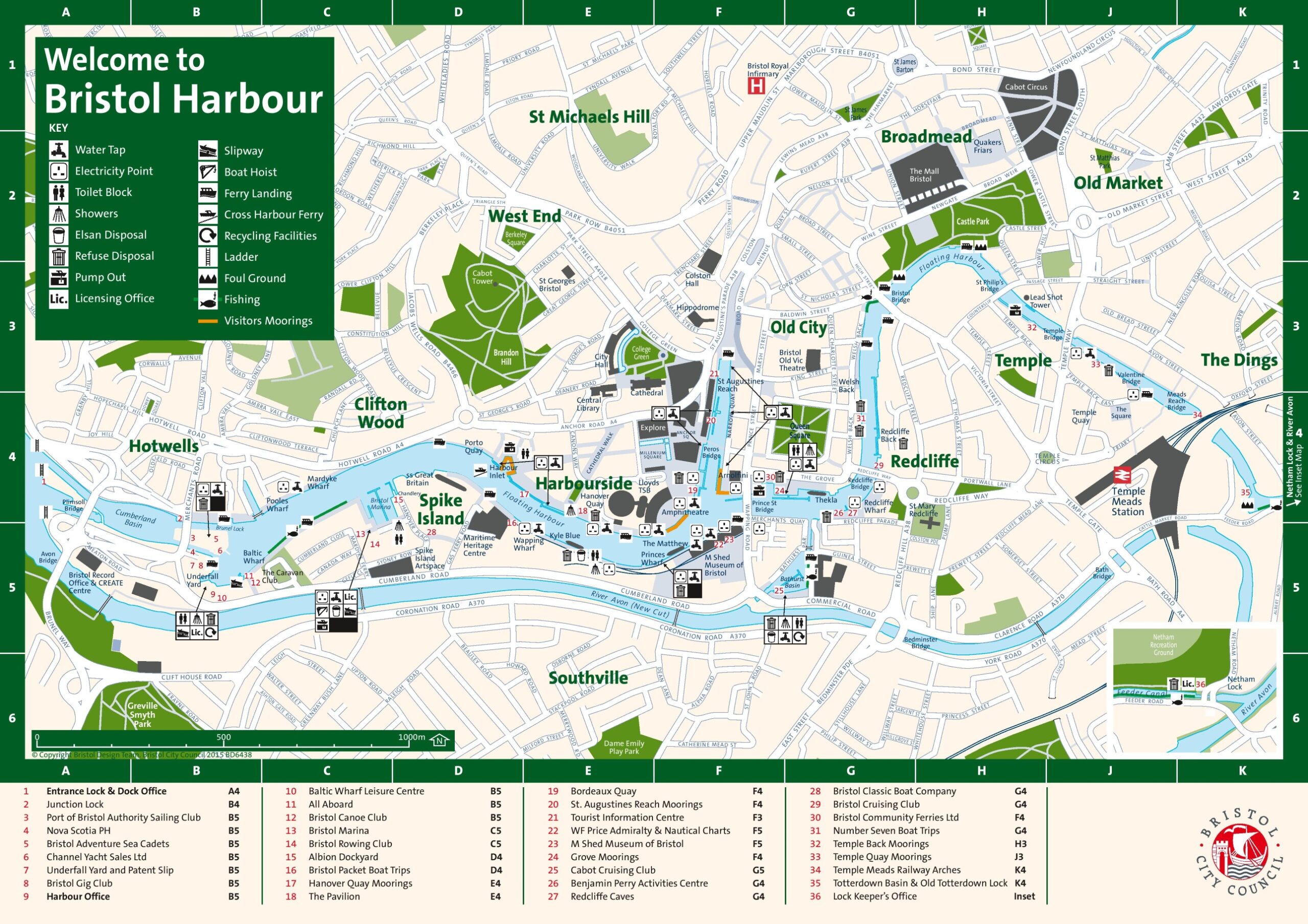 A map indicating the services available to boat dwellers – map: Bristol City Council