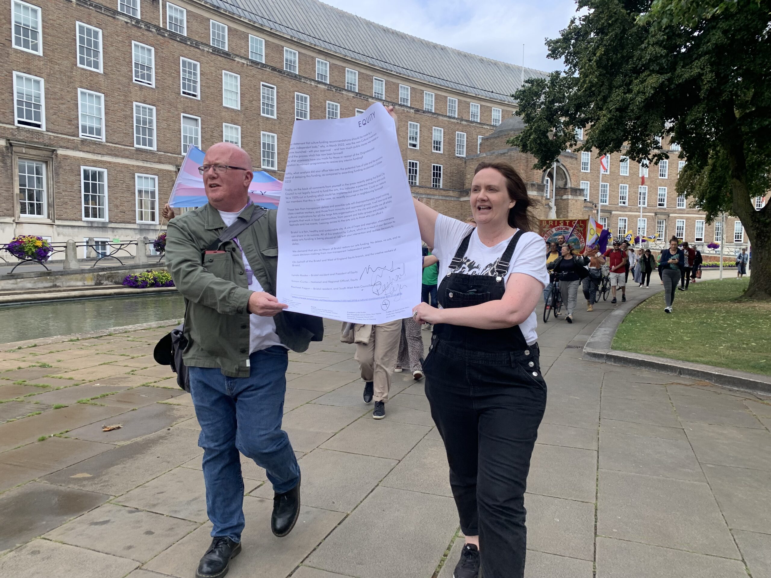 Members of performing arts union, Equity, handed a letter to Marvin Rees at City Hall, demanding the mayor restore funding and ensure an independent funding panel was democratic and fair.