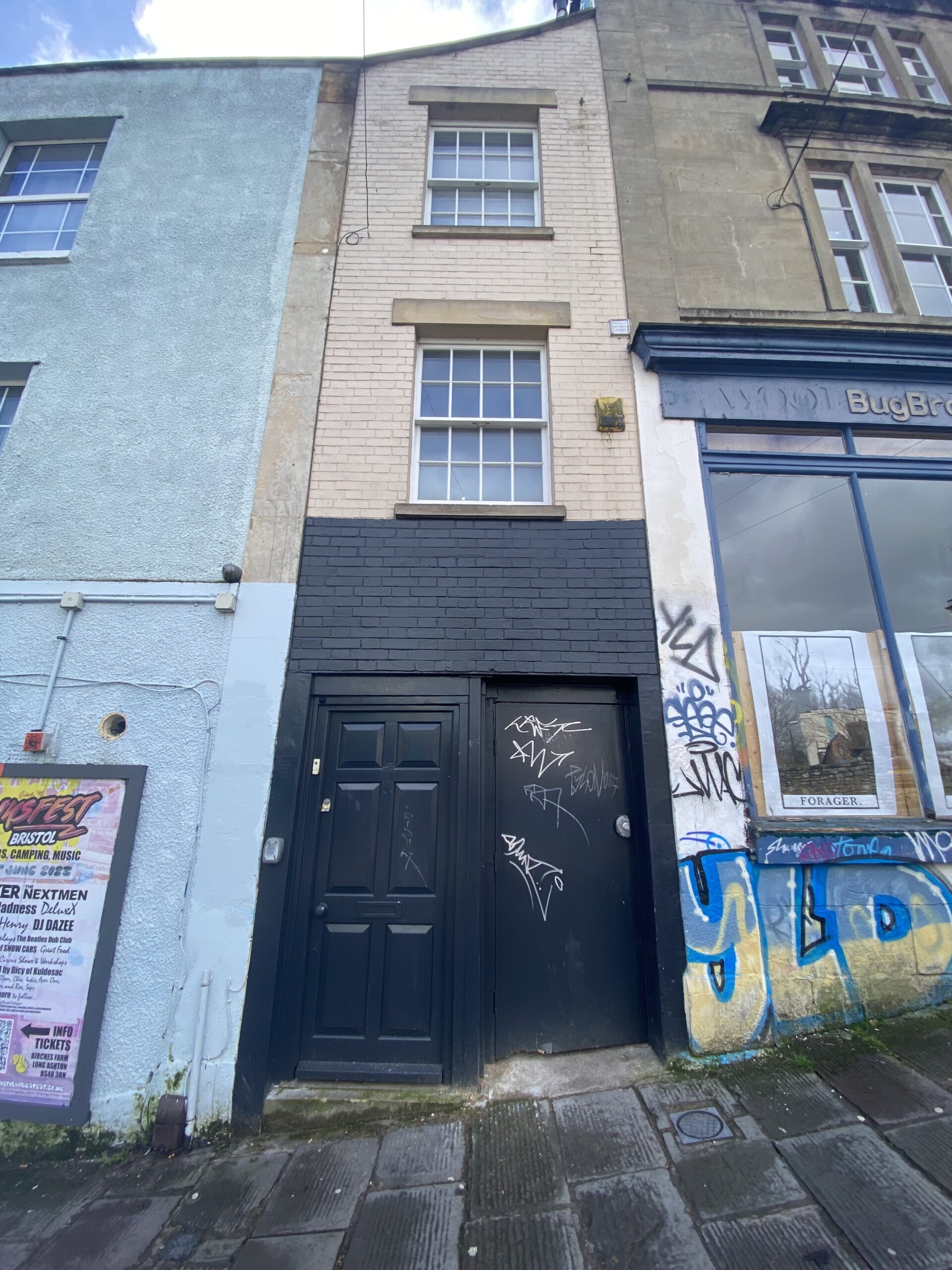 Described as a “truly unique one-bedroom town house”, it is sandwiched between two commercial properties on Nine Tree Hill in Kingsdown, just off Stokes Croft.