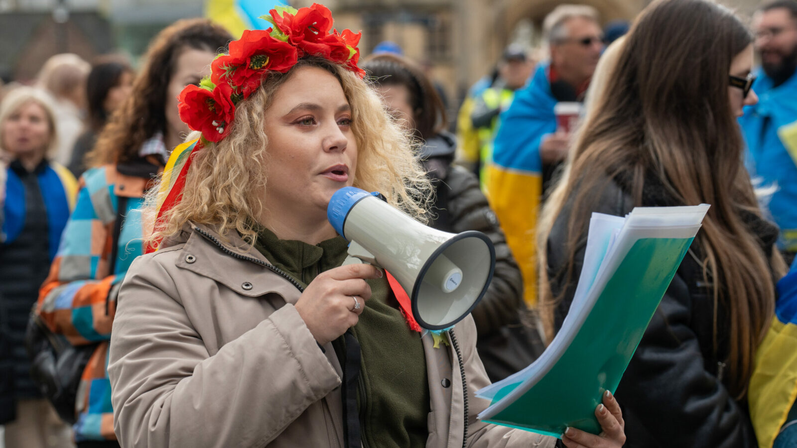 Olya Radetskaya, who helped to organise the march, is from the Luhansk region of the country, which is currently occupied by Russia – photo: Mia Vines Booth