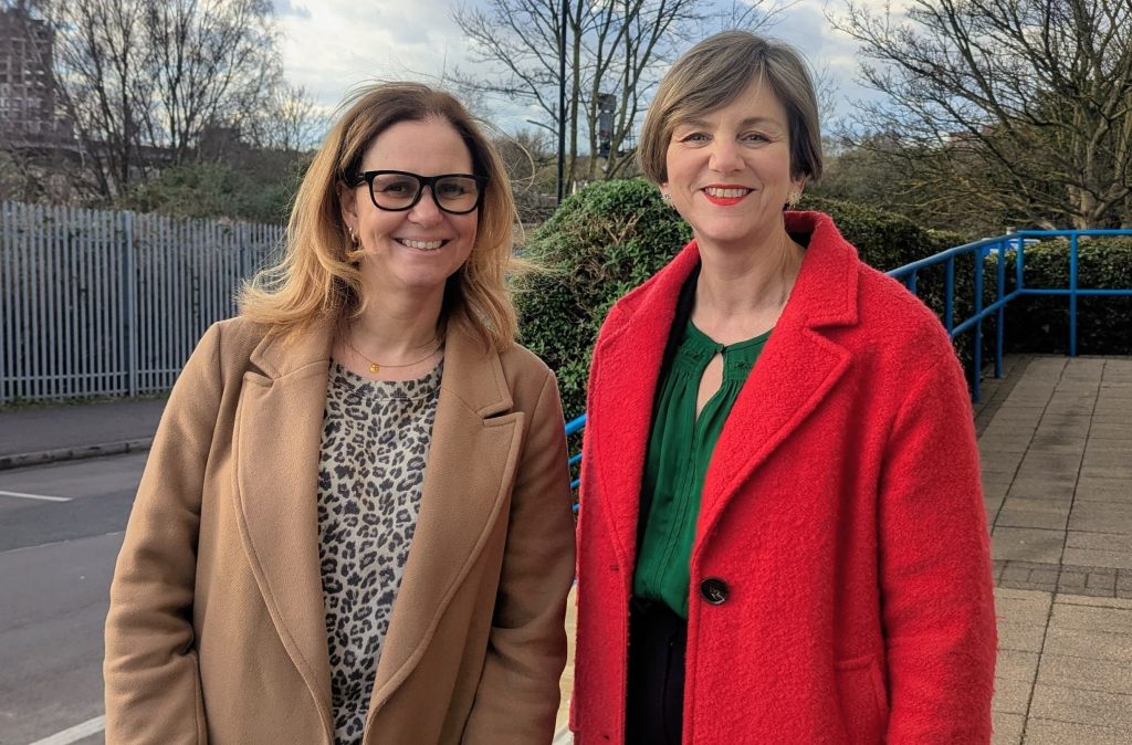 Minister for roads, Lilian Greenwood (right), with Helen Godwin (left) on Thursday as Greenwood announced a £6m investment package aimed at improving local road infrastructure and addressing pothole repairs across the Bristol region – photo: Labour Party