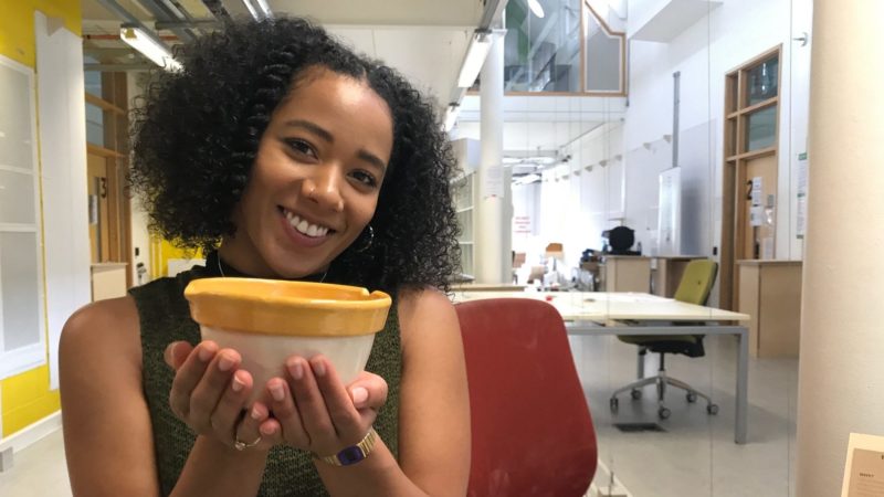Josephine showing part of the product that earned a Degree Show Project of the Year 2018 award