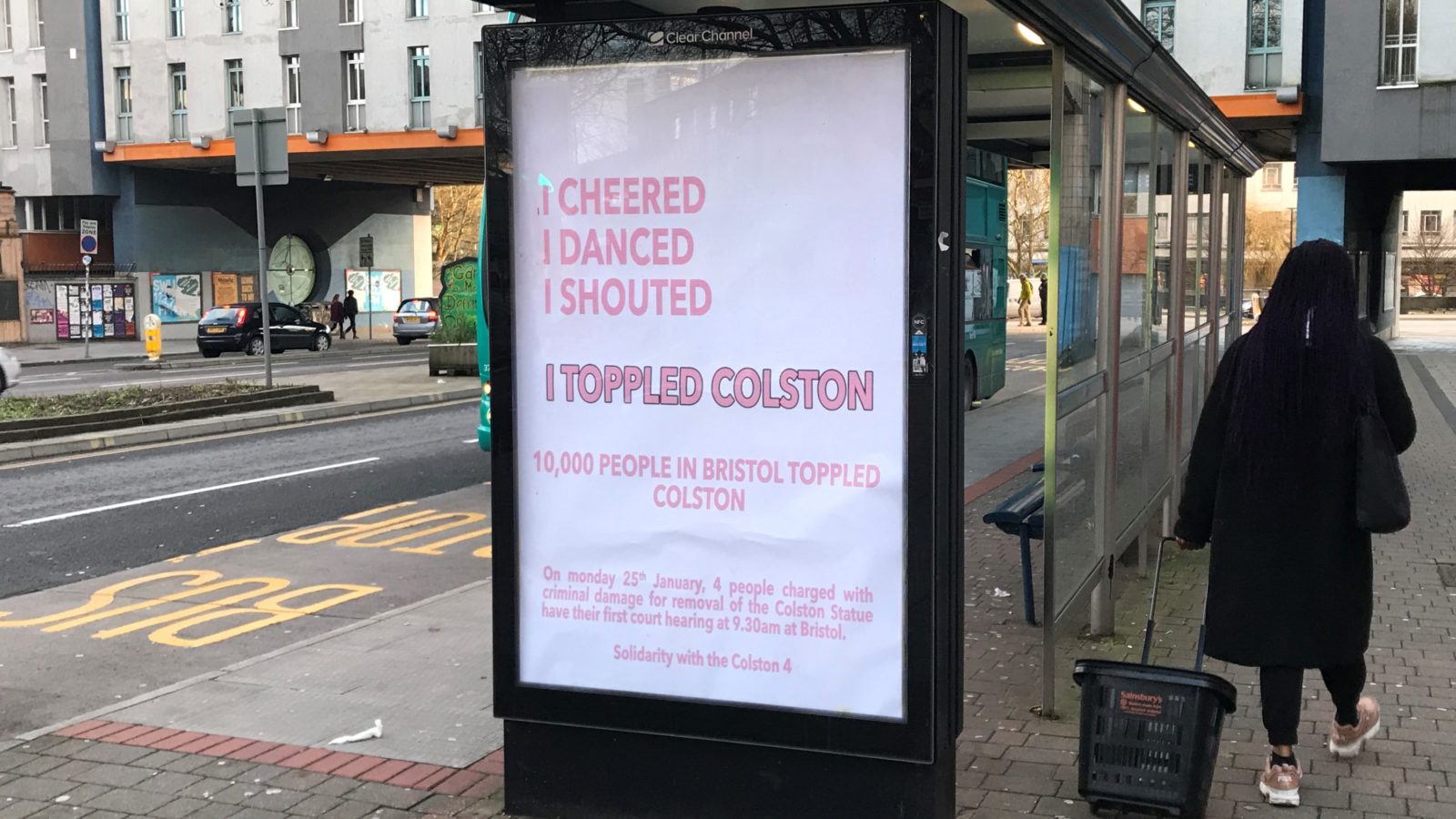 Bus stop adverts repurposed to show support for ‘Colston 4’