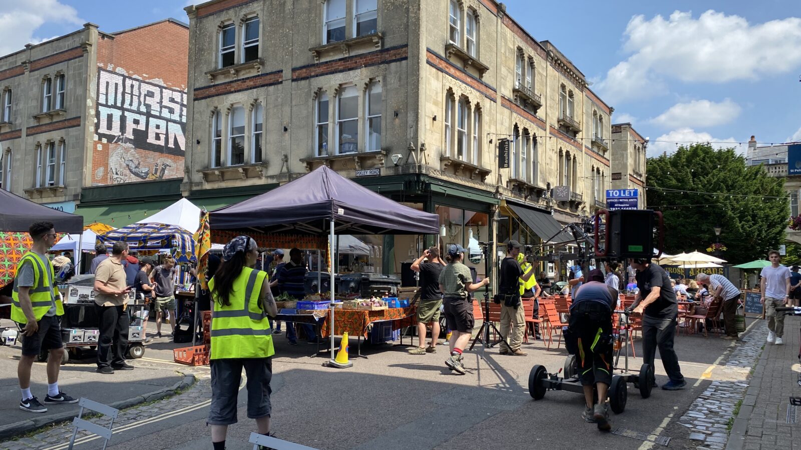 Filming on Wednesday took place less than half a mile away from the school, with King’s Road in Clifton Village transformed into ‘Pixley Lane’ where a market complete with traders selling fresh produce and jewellery was taking place.