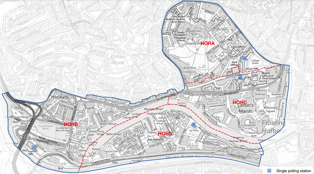 Hotwells & Harbourside ward stretches from the Cumberland Basin to the Cascade Steps – map: Bristol City Council