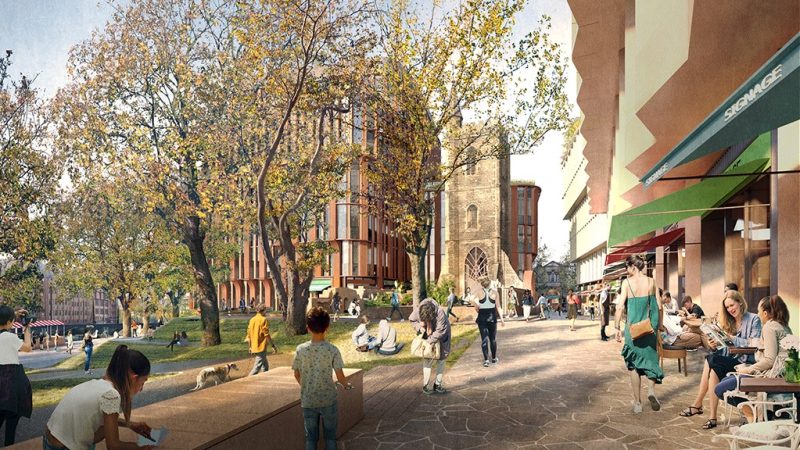 Developers MEPC hope to restore the church’s historic tower and build three new office buildings around it, with shops, cafes, restaurants and bars at ground level.