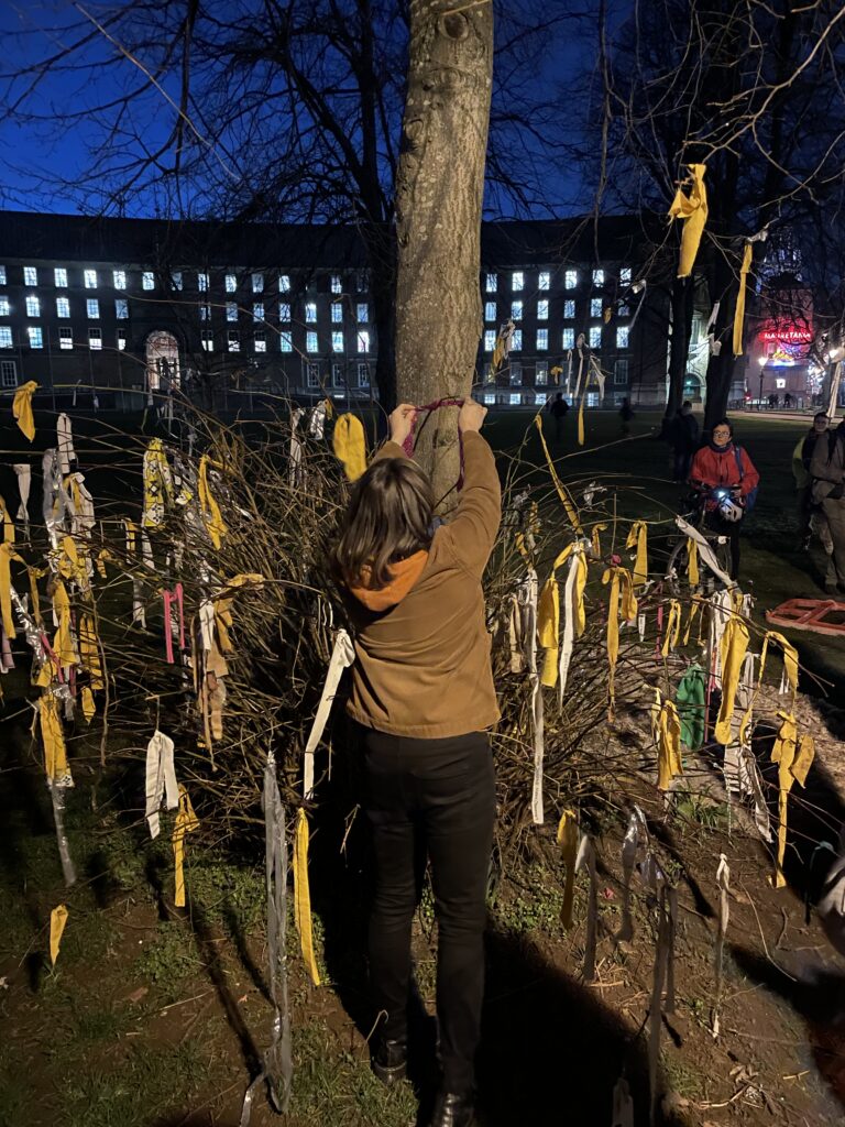 The vigil took place close to a tree on which ribbons are tied to remember trans people who have died due to violence.