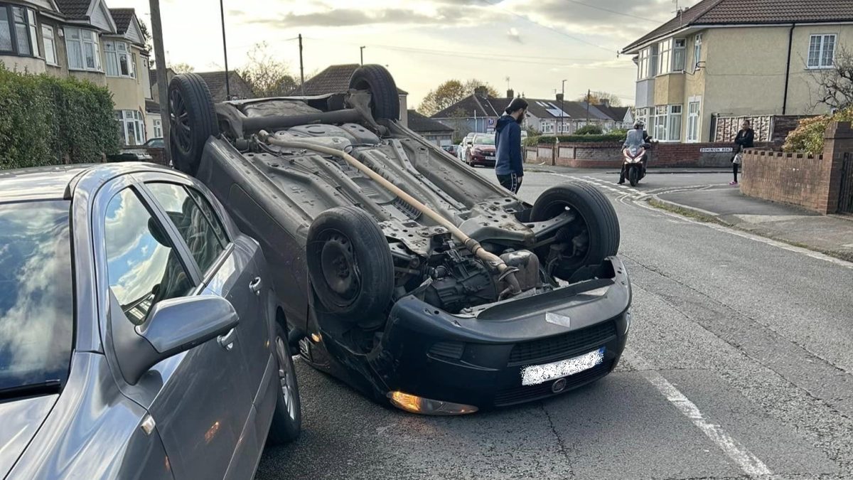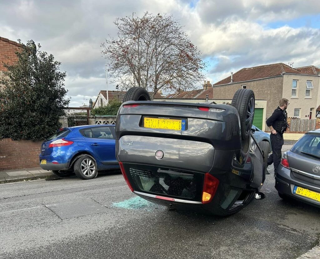 A driver overturned a car on the junction of Ridgeway Road and Dominion Road earlier this month – photo: Mary Stevens