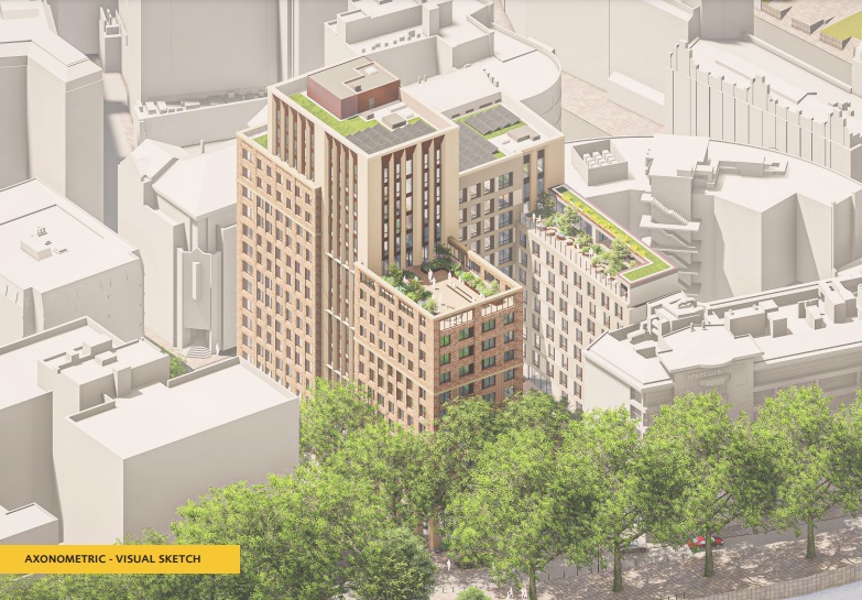 The new Waverley House from Unite Students could provide beds for 507 students – more than double the existing number on the site – as well as featuring new public realm and “active frontages”, improving what is currently a rather uninspiring corner of the city centre.