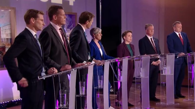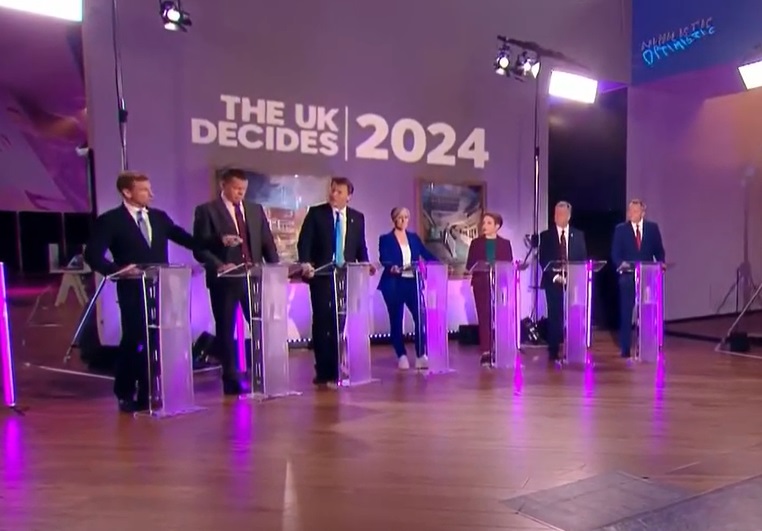 Carla Denyer took part in the leaders’ debate alongside Rhun ap Iorweth (Plaid Cymru), Richard Tice (Reform), Nick Symonds (Labour), Chris Philip (Conservative), Daisy Cooper (Lib Dem) and Keith Brown (SNP) – photo: Channel 4