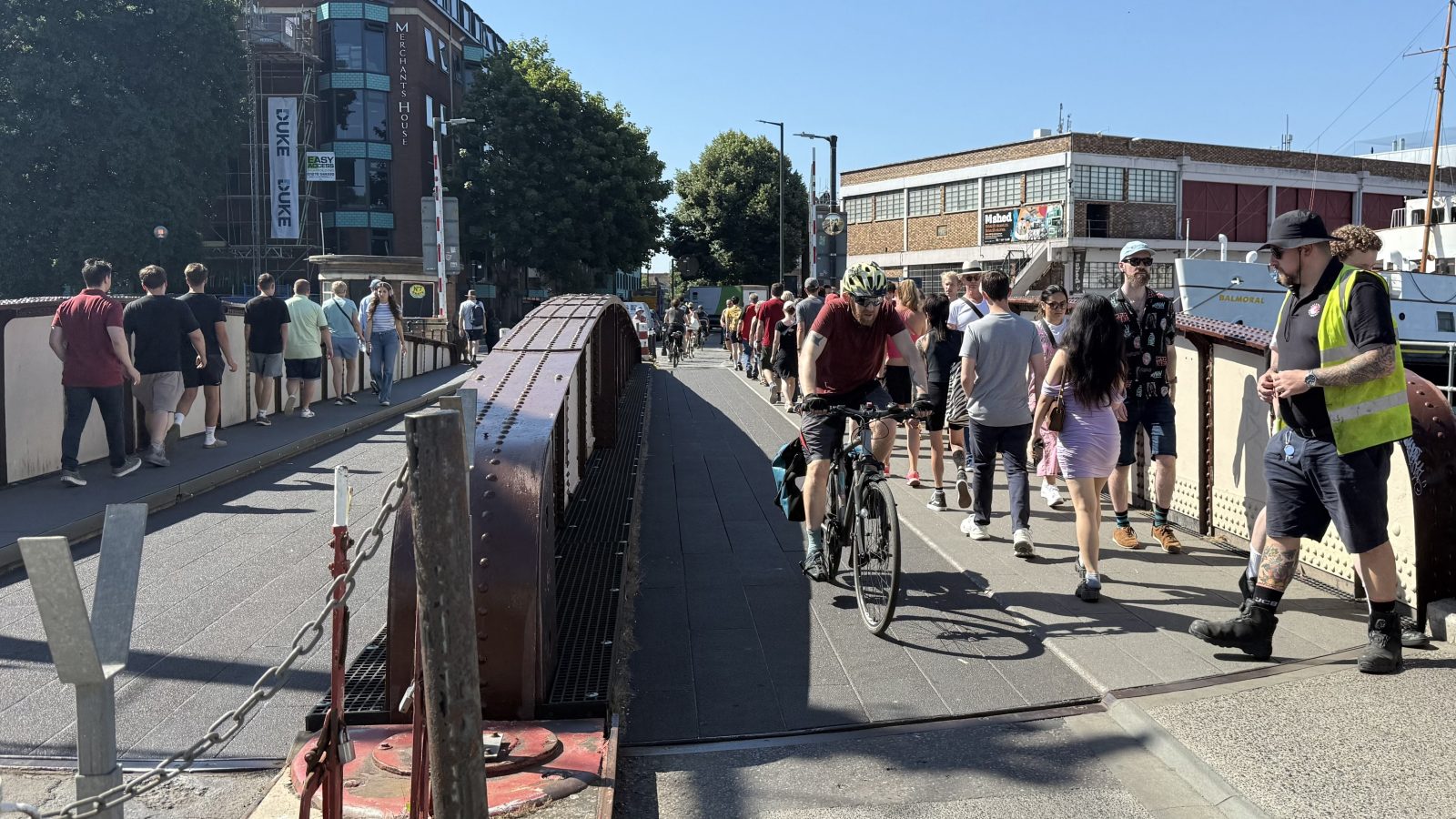 But right now, space for cars takes up almost half of the bridge next to a very narrow pavement; with cyclists and pedestrians squeezed together on the side nearest the M Shed.