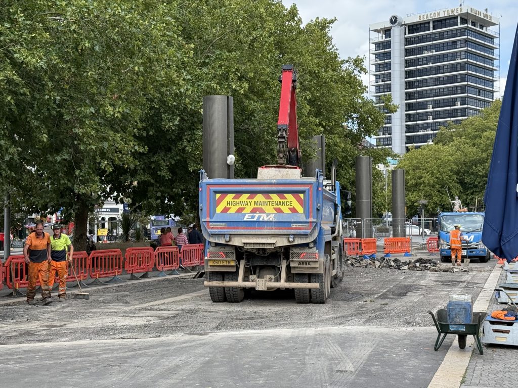 The work to resurface the Centre was done so badly that they are starting it again. I’m not sure whether the correct word to describe this is clusterfuck or omnishambles. pic.twitter.com/hghFxDaLi5