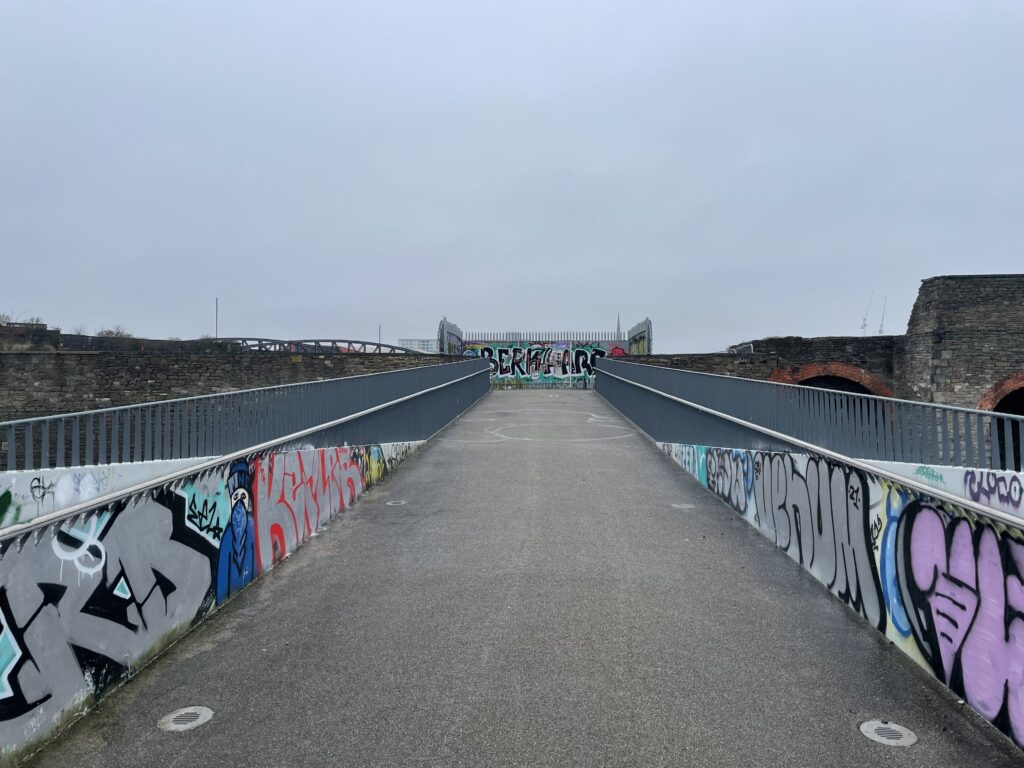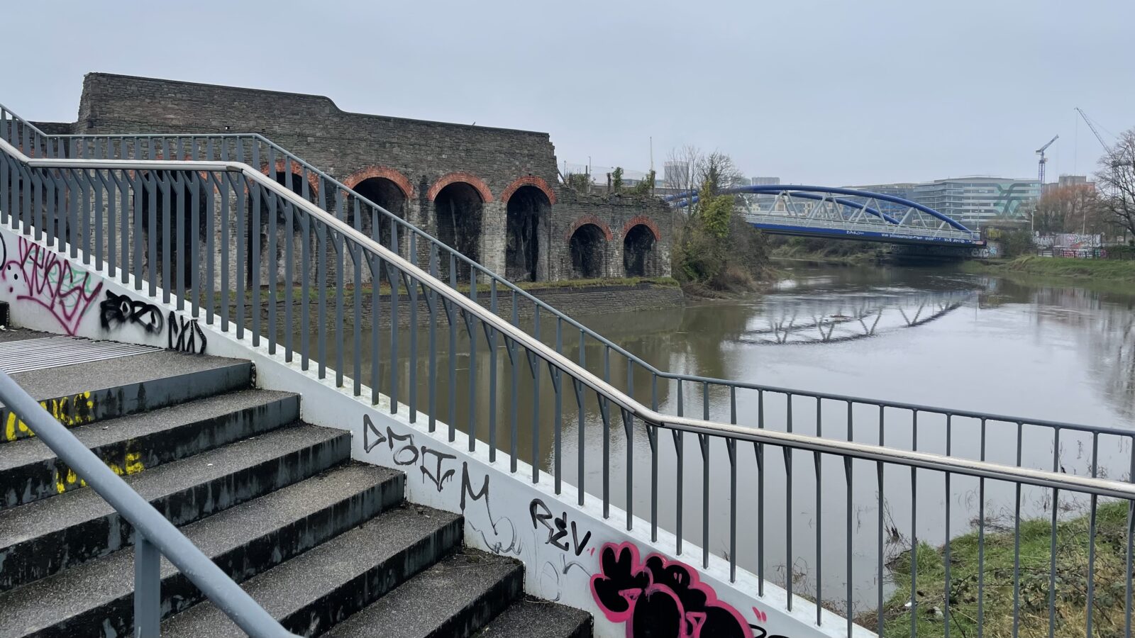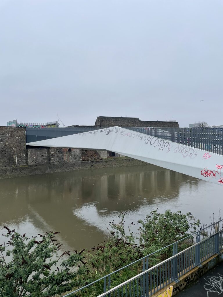 St Philip’s Footbridge connects the riverside path to the former Arena Island – photo: Martin Booth