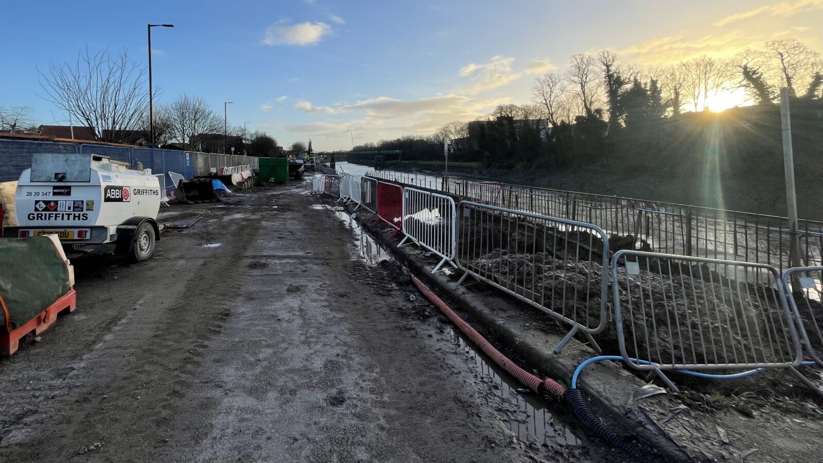The wall along the New Cut can now be replaced, with a concrete slab now needing to be installed across the piling and a supporting ground beam put in place along the base of the wall.