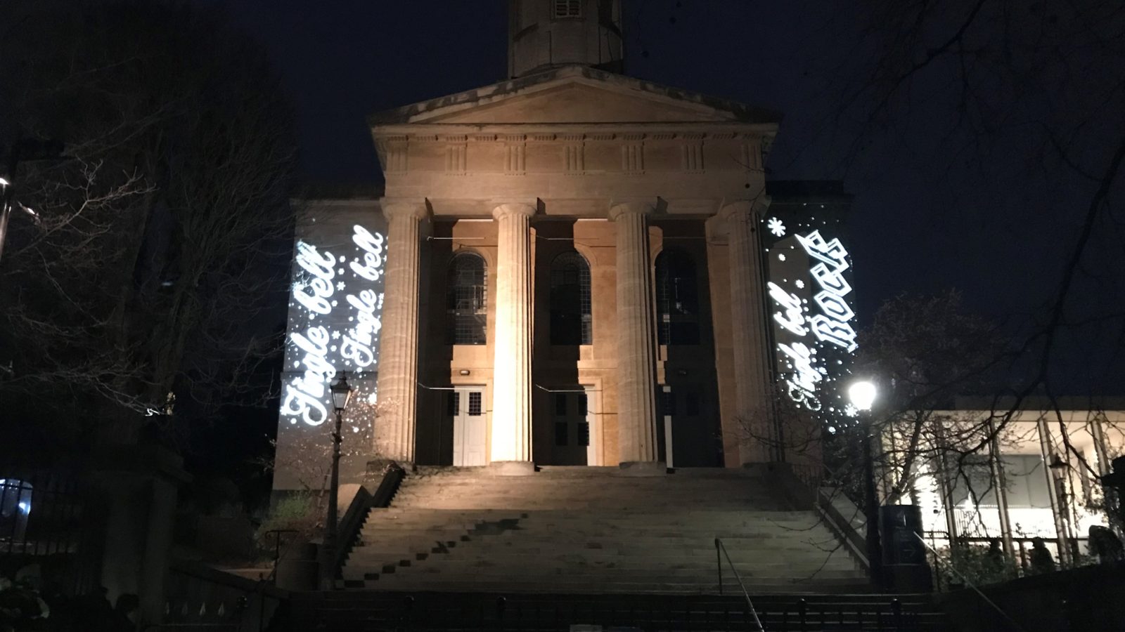 Well-known lyrics from Christmas songs will be projected onto buildings across the city centre until Christmas Eve, with St George’s full of Jingle Bell Rock as the sun set on the first day of December.