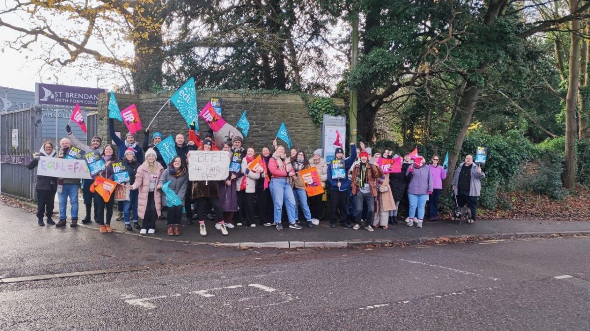 Gathered outside St Brendan’s Sixth Form College in Brislington the teachers held placards with their requests while forming a picket line at the entrance of the college.