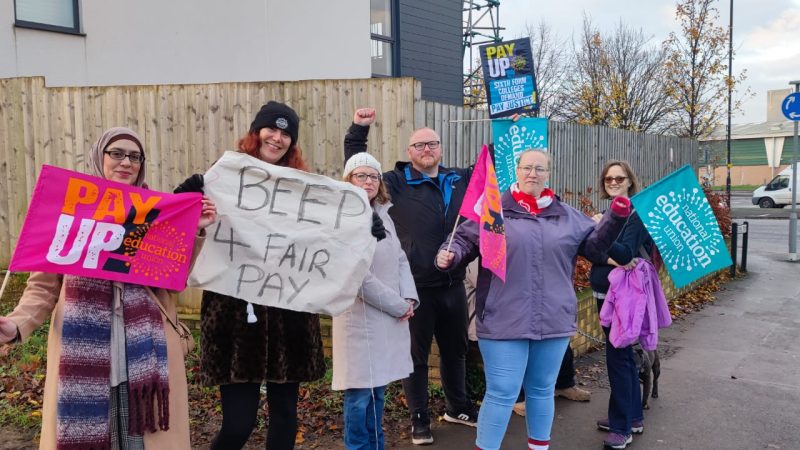 Some placards read – Beep 4 Fair Pay – urging passing cars to beep if they supported the NEU’s fight.