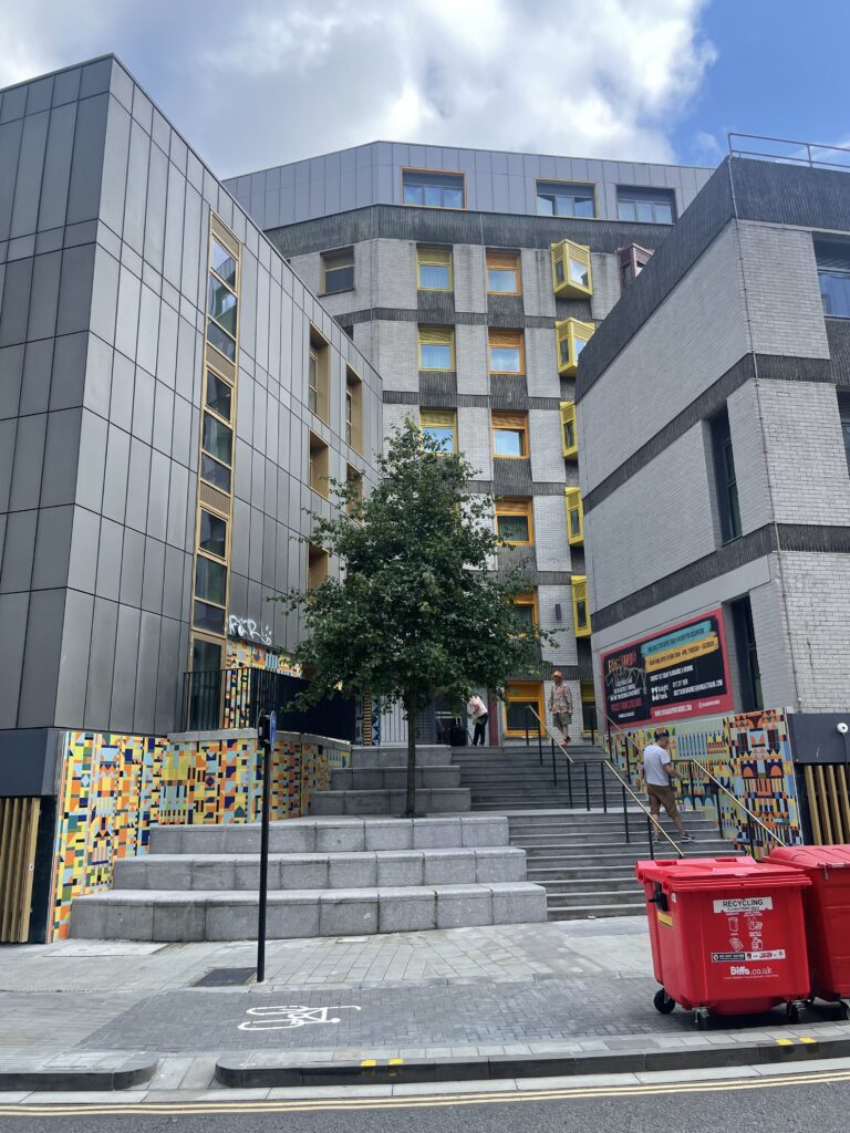 Artist Adam Nathaniel Furman has added a splash of colourful to the steps and Tower Lane with an artwork made from asymmetric tiles.