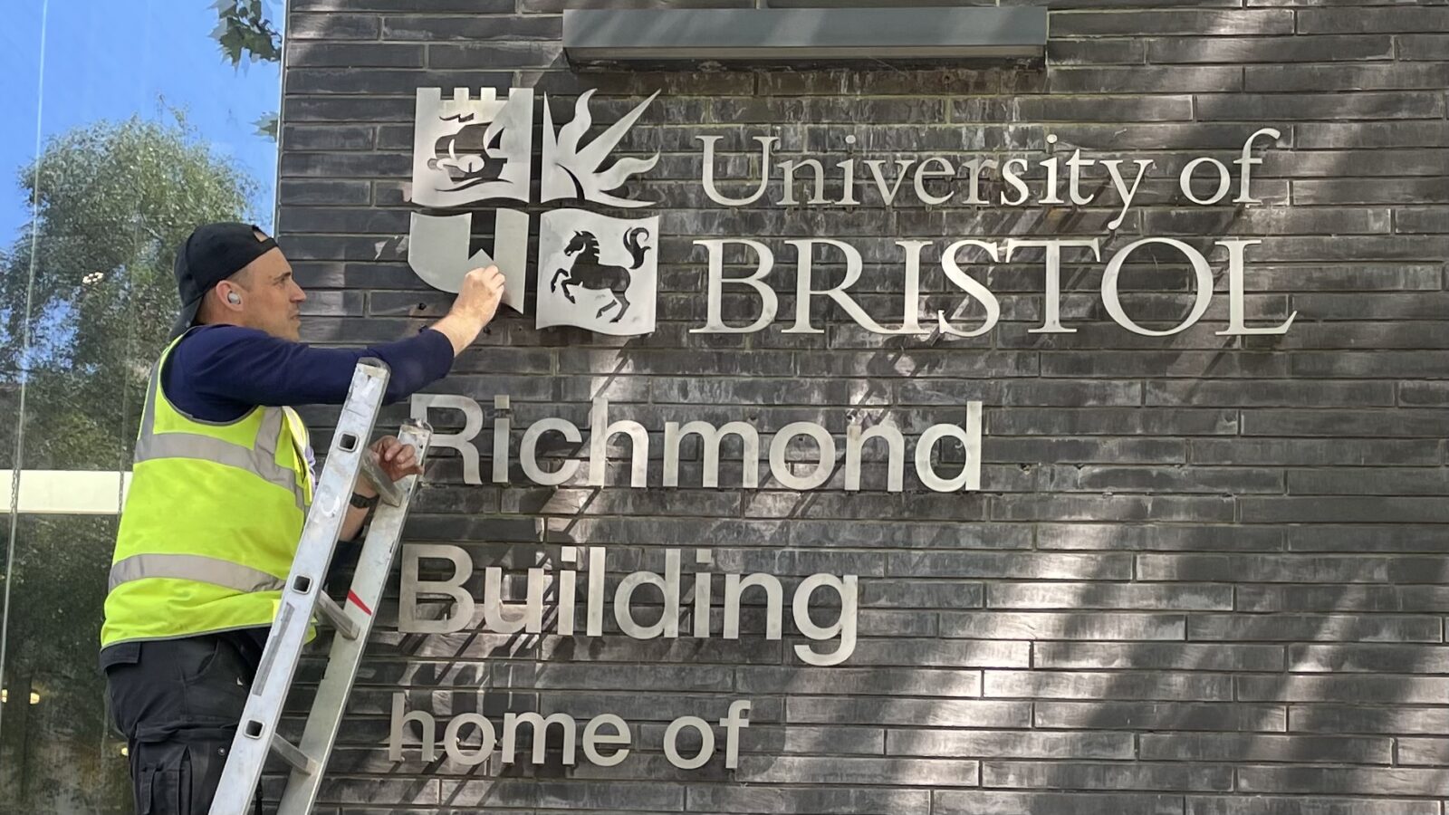 Dozens of signs at the University of Bristol are currently being subtly altered to remove the dolphin that is closely associated with Edward Colston.