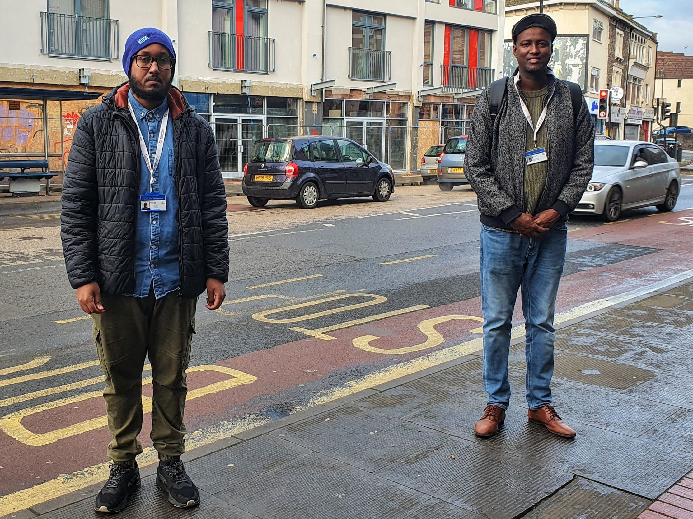 Feisal Said (left) and Khalil Abdi of Bristol Horn Youth Concern are out on Stapleton Road most days to provide support where it is needed – photo by Ellie Pipe