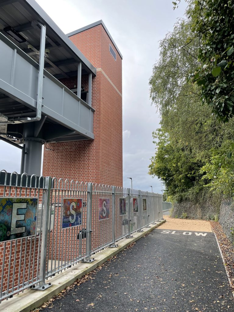 The new station’s entrance is on Concorde Way where the path meets Station Road.