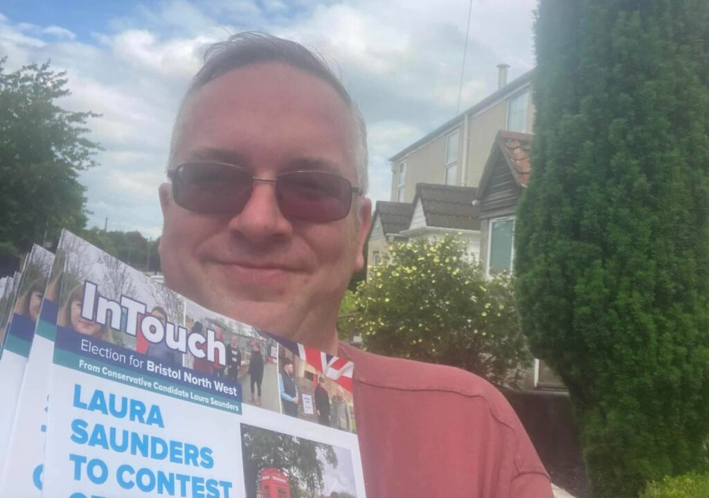 Bristol’s Conservative group leader, Mark Weston, campaigning for Laura Saunders – photo: Mark Weston / Facebook