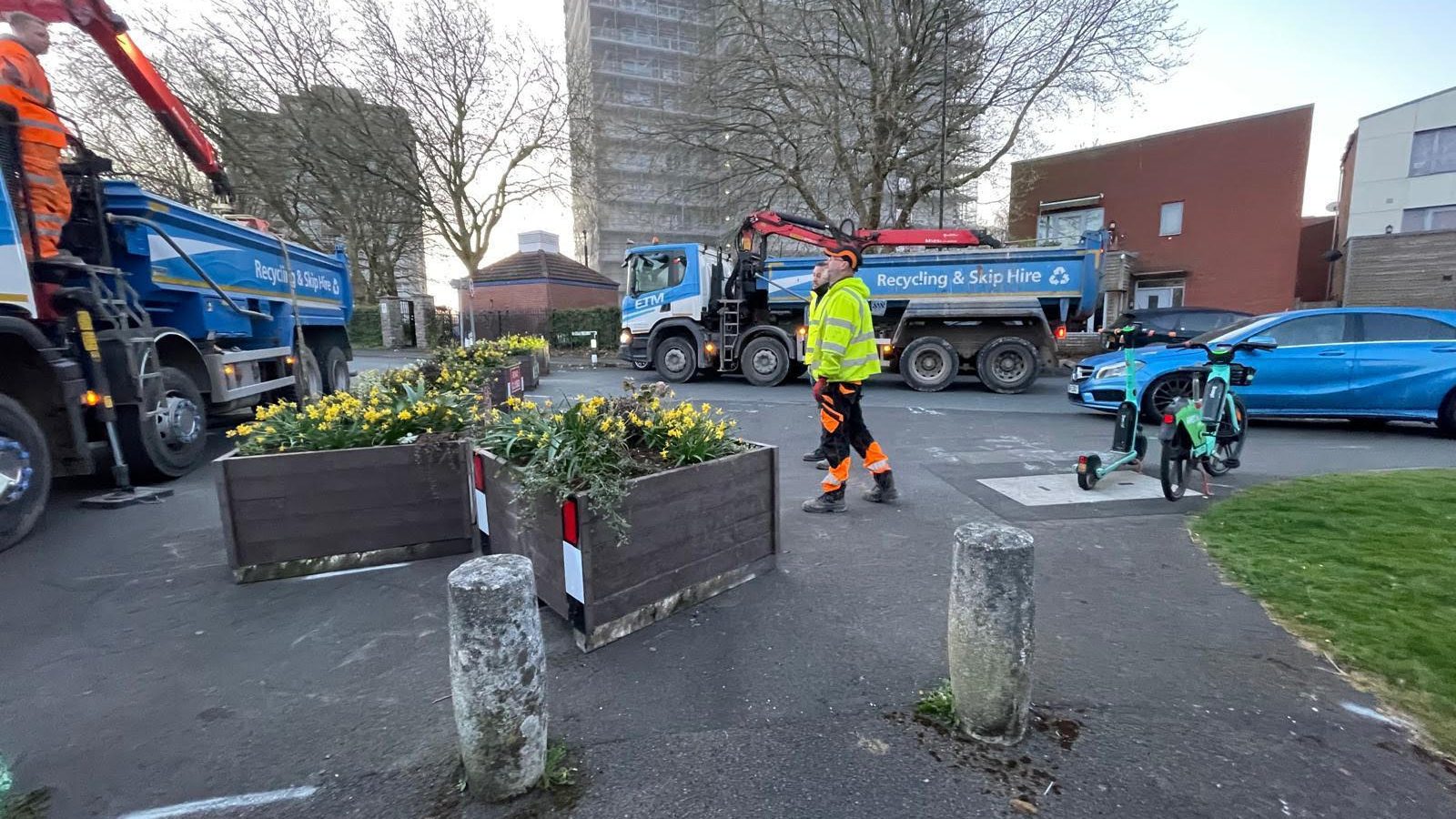 The contractors installed the planters at Wellspring Settlement, which have blocked off the road to traffic. There were also new planters at Barton Hill Road.