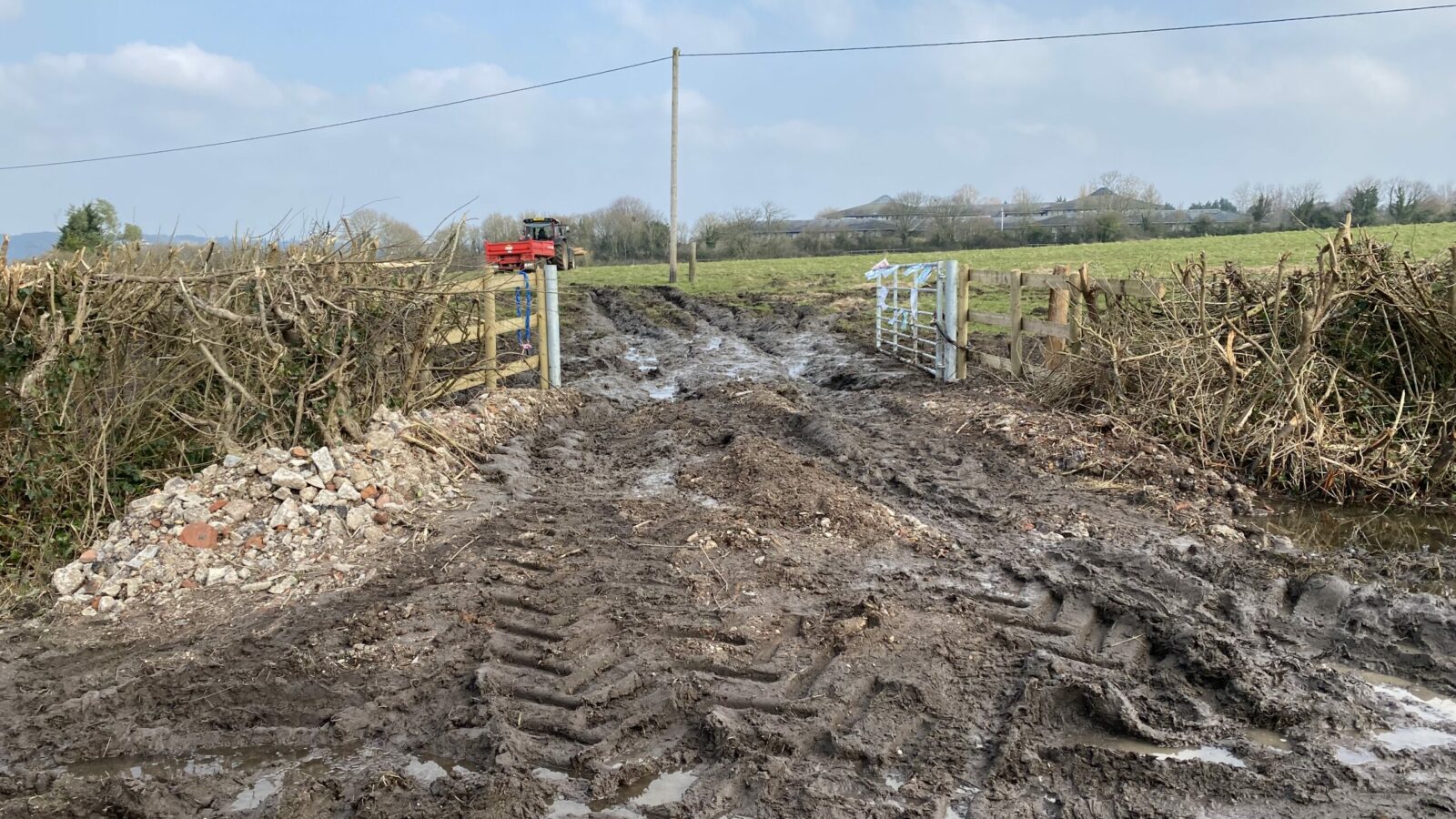 Heavy machinery and tractors could be seen on the field on Friday, with the ground near the gate churned up by machinery, leading to water logging under the hedge.