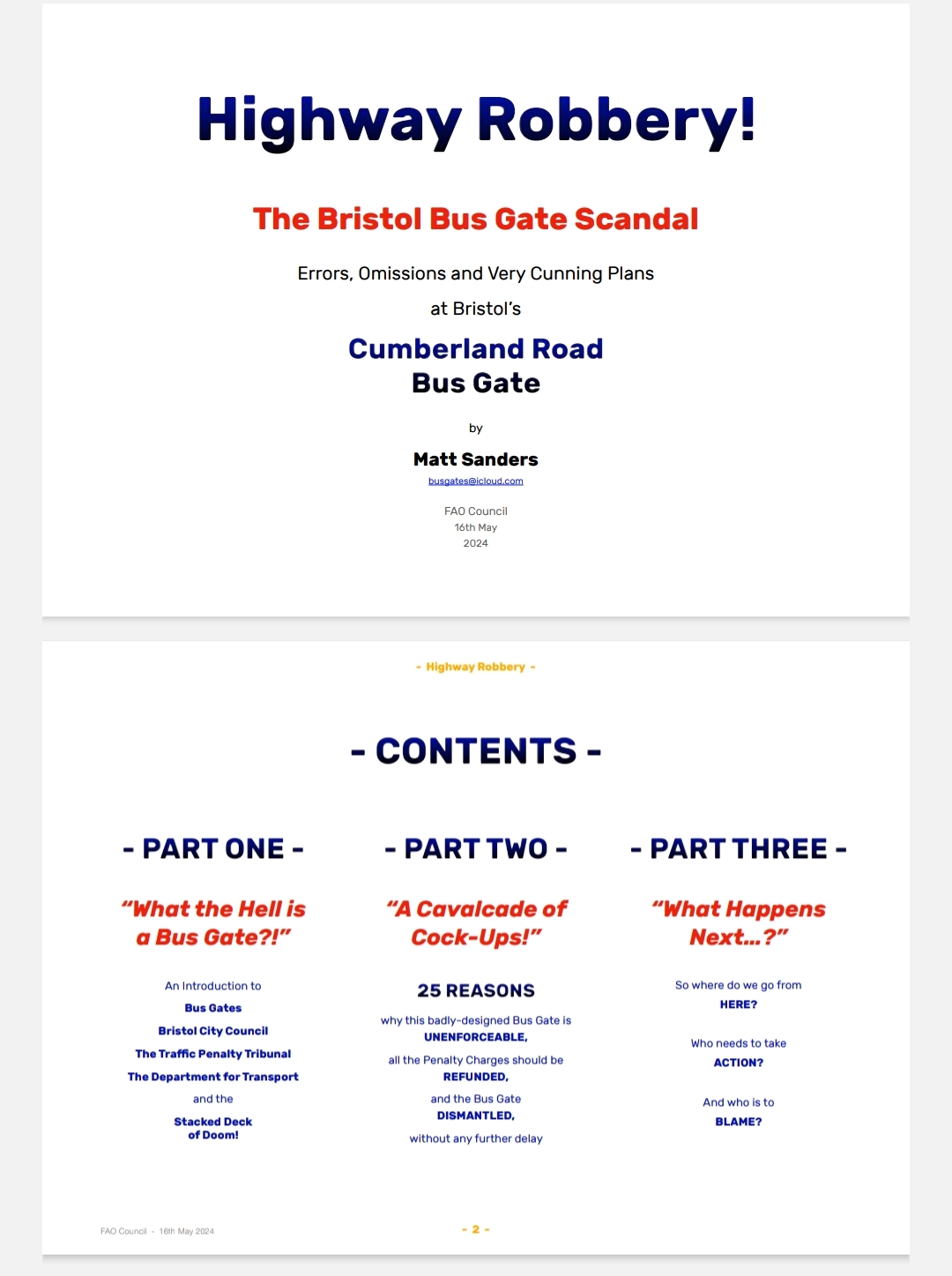 Matt Sanders compiled a damning dossier on the “shortcoimngs” of bus gate on Cumberland Road – screenshot: Milan Perera