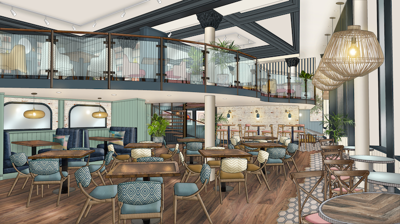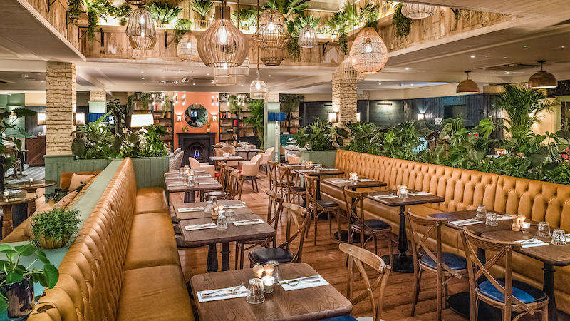Located in a former linen works, Coppa Clifton Village spans two floors and has been meticulously designed to create a spacious 200-cover venue. The space offers original floor-to-ceiling colonnades and exposed brick walls, sumptuous leather banquettes, wicker pendant lights, blush pouffes and sofas, hanging foliage and stunning artworks. It’s a flexible space for those looking to meet, eat, drink or relax.
