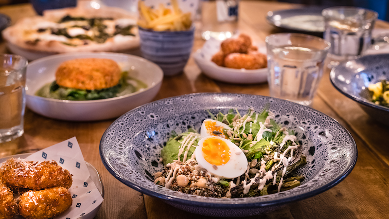 Heartier dishes of halibut ‘al cartoccio’ with fennel, freekeh & anchovy, roast lamb rump with rosemary and Loch Duart salmon with braised puy lentils are also available. Elsewhere, lighter salads and grain bowls sit alongside fresh pastas and thin-crusted sourdough pizzas.